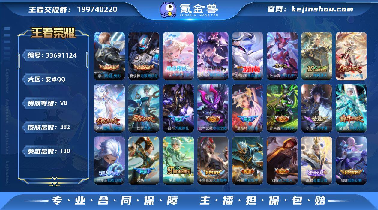 【店铺主推·无限飓风号·鸣剑曳影·酷洛米之心·大耳狗之梦·怪盗基德·愿照千秋盛·愿照九州拓·浮生妄·补天·兰陵王默契交锋·时雨天司·太华·天魔缭乱·飞衡·至尊宝·无二次包过】YXw25018-安卓Q-130英雄-382皮肤-16王者印记-300铭文-贵族积分8w【贵族8】【3典藏·3珍品·2星传说·22传说·1天幕·13按键】【因赛季更新游戏段付以上号为准!】 【英雄全皮】:嬴政全皮,刘邦全皮,孙权全皮,钟馗全皮,狂铁全皮,敖隐全皮,夏洛特全皮,空空儿全皮 【荣耀典藏】:武则天英雄,夏侯惇无限飓风号,李白鸣剑曳影 【珍品传说】:安琪拉酷洛米之心,瑶大耳狗之梦,马可波罗怪盗基德 【星元皮肤】:孙尚香未来机甲,刘备时之思念 【天幕】:棉花糖聚会天幕 【传说皮肤】:后羿神树通天,女娲愿照千秋盛,澜愿照九州拓,嬴政玄雷天君,桑启鸣野蒿,东皇太一灼幽烈阳,夏洛特浮生妄,女娲补天,孙策末日机甲,周瑜音你心动,兰陵王默契交锋,诸葛亮时雨天司,虞姬启明星使,李信一念神魔,刘备时之恋人,伽罗太华,貂蝉猫影幻舞,干将莫邪久胜战神,孙尚香末日机甲,宫本武藏地狱之眼,吕布天魔缭乱,武则天海洋之心 【限定皮肤】:白起狰,暃埋骨钱,大乔绒语心约,姜子牙天穹之誓,李白谪仙醉月,狄...