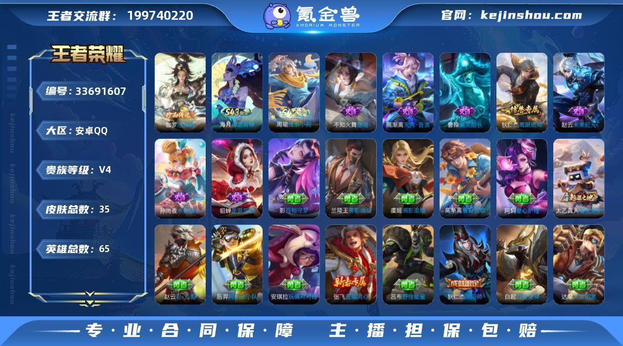 【店长主推珍品小号·沧流箭·无二次包过】YXw25170-安卓Q-65英雄-35皮肤-2王者印记-35铭文-贵族积分0w【贵族4】【1珍品】【因赛季更新游戏段付以上号为准!】 【珍品传说】:伽罗沧流箭 【限定皮肤】:狄仁杰阴阳师,项羽海滩派对 【赛季限定】:太乙真人谧流熔炉 【战令限定】:周瑜线条小狗 【史诗皮肤】:海月海之女神,周瑜线条小狗,高渐离天秀音浪,不知火舞魅语,狄仁杰鹰眼统帅,曹操幽灵船长,孙尚香水果甜心,貂蝉圣诞恋歌,赵云未来纪元 【其他皮肤】:影百相守梦,兰陵王雾影缉谜,虞姬溯影追猎,高渐离落日弦歌,太乙真人谧流熔炉,吕布野性能量,关羽龙腾万里,刘备汉昭烈帝,狄仁杰阴阳师,后羿阿尔法小队,张飞五福同心,安琪拉玩偶对对碰,白起白色死神,赵云忍炎影,达摩大发明家,阿轲爱心护理,项羽海滩派对,司空震启蛰,沈梦溪棒球奇才,明世隐占星师,干将莫邪第七人偶,虞姬加勒比小姐,兰陵王隐刃,刘禅英喵野望,老夫子潮流仙人
