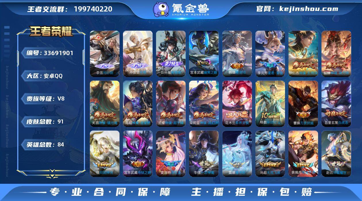 【精品推荐·1.3w金标曹操·1.3w金标马超·1.3w金标蚩奼·1.2w金标狂铁·1.1w金标元歌·万战金标夏洛特·万战关羽·万战杨戬·问心剑·无相·离恨烟·满马年限定·踏浪归·霜月吟·浮生妄·白虎志·无二次包过】YXw24330-安卓Q-84英雄-91皮肤-3王者印记-70铭文-贵族积分7w【贵族8】【3无双·1星传说·22传说·14按键】【因赛季更新游戏段付以上号为准!】 【英雄全皮】:敖隐全皮,夏洛特全皮,空空儿全皮,影全皮 【无双皮肤】:李信问心剑,孙悟空无相,公孙离离恨烟 【星元皮肤】:宫本武藏幽冥之眼 【传说皮肤】:韩信踏浪归,云缨神骥越千峰,关羽神骥镇沧海,朵莉亚神骥鸣幻洲,狄仁杰神骥赴朔漠,貂蝉神骥聚万邦,马超神骥逐星野,李元芳星君娄金,花木兰异界灵契,杨戬纵目迁山,曹操万灵伏威,裴擒虎祥瑞亨通,露娜霜月吟,夏洛特浮生妄,马超无双飞将,赵云淬星耀世,镜炽阳神光,虞姬启明星使,李信一念神魔,张良黄金白羊座,百里玄策白虎志,宫本武藏地狱之眼 【限定皮肤】:公孙离离恨烟,暃埋骨钱,狄仁杰阴阳师,赵云皇家上将,妲己时之彼端,元歌无心,狄仁杰魔术师,项羽海滩派对,老夫子圣诞老人,虞姬启明星使,百里玄策白虎志,夏洛特浮生妄,姬小满妄想食味,曹操夜都魔契 【...