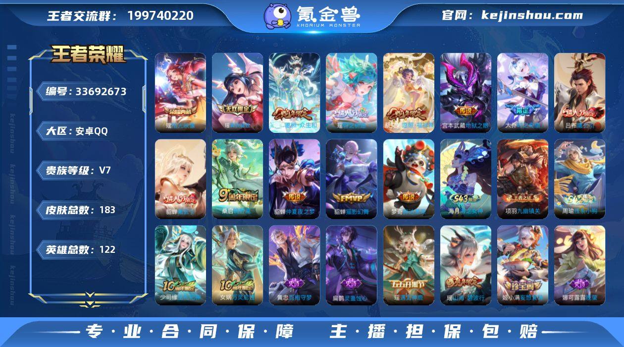 【Hwz1278】【精品可二次小女号】安卓Q-V7-市标貂蝉-14个县标-122英雄-183皮肤-1典藏皮肤-1无双-11传说-49史诗(时之愿境,拾光映像,真我赫兹,愿照众生和,愿照福禄聚) 【荣耀典藏】:瑶拾光映像 【无双皮肤】:瑶真我赫兹 【传说皮肤】:妲己愿照众生和,蔡文姬愿照福禄聚,桑启鸣野蒿,吕布曦玄引,貂蝉曦玄引,大乔时之奇旅,瑶时之祈愿,貂蝉猫影幻舞,梦奇胖达荣荣,貂蝉仲夏夜之梦,宫本武藏地狱之眼 【限定皮肤】:大乔绒语心约,姜子牙天穹之誓,狄仁杰阴阳师,赵云皇家上将,孙尚香蔷薇恋人,庄周高山流水,狄仁杰魔术师,项羽海滩派对,李元芳云中旅人,鬼谷子五谷丰年,大乔时之奇旅,梦奇顽趣,裴擒虎擒涛扼浪,瑶时之祈愿,瑶山海碧波行,盾山梦圆繁星,嫦娥拒霜思,鲁班大师探海日志,桑启海盐诗旅,阿古朵江河有灵,张良古海寻踪,鬼谷子天穹祈灯,姬小满妄想食味,吕布曦玄引,貂蝉曦玄引,沈梦溪龙舞盛年,鲁班七号蔬乡物语,李元芳蔬乡物语,刘邦剑破天穹,程咬金群星魔术团,周瑜熔金海岸 【年限皮肤】:瑶山海碧波行,妲己愿照众生和,蔡文姬愿照福禄聚 【赛季限定】:李元芳云中旅人,桑启海盐诗旅,裴擒虎擒涛扼浪,鲁班大师探海日志,张良古海寻踪...