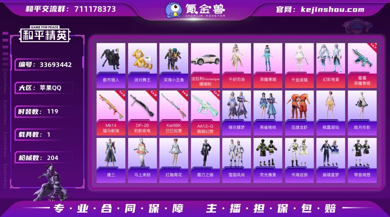 苹果 手Q-4粉装-5特效枪-1载具-4粉色飞行器-51794热力值-7王牌印记-119套装-204枪皮 【热门品类】:套装-浪漫天命,套装-都市猎人,套装-派对舞王,套装-深海小丑鱼,套装-小丑鱼,套装-暗影哥特 【粉色套装】:角色-千金淑猫,粉装-幻彩电音,角色-异瞳寒姬,角色-千织司命 【粉色枪皮等级】:蜜獾-异瞳寒姬(七级),Kar98K-巳巳如意(五级),Mk14-福马献瑞(五级),AA12-G-萌骑幻想(四级),DP-28-豹影疾电(五级) 【粉色载具】:法拉利Purosangue(珊瑚粉) 【粉色枪皮】:蜜獾-异瞳寒姬,Kar98K-巳巳如意,Mk14-福马献瑞,AA12-G-萌骑幻想,DP-28-豹影疾电 【粉色飞行器】:炫彩糖果飞行器,幻星舰长飞行器,时光之誓飞行器,千仞雪飞行器 【粉色降落伞】:绝对恒星降落伞,梦幻火箭降落伞,星之彼岸降落伞,樱桃泡泡降落伞,墨金战记降落伞,幻星舰长降落伞,幻彩电音降落伞,时光之吻降落伞,荧海星豚降落伞,异瞳寒姬降落伞,炫彩糖果降落伞,罪夜之冕降落伞,虎痴许褚降落伞,鸢尾珑雾降落伞,诸神·破晓降落伞 【稀有套装】:套装-小鸟芋圆,套装-乐游熊熊,角色-超感刻度,套装-荧光像素,套装-雪国风尚,套装-炫彩糖果,套装-马上来财,套装-迅捷龙虾,套装-燕燕于飞,套...