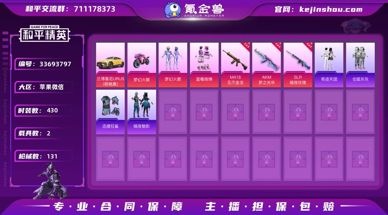 【稀有枪皮】Kar98K-巳巳如意,14-福马献瑞,蜜獾-荧海星豚,平底锅-喜羊羊与灰太狼,DP-28-豹影疾电,M416五爪金龙,AKM梦之光华,SLR暗夜玫瑰