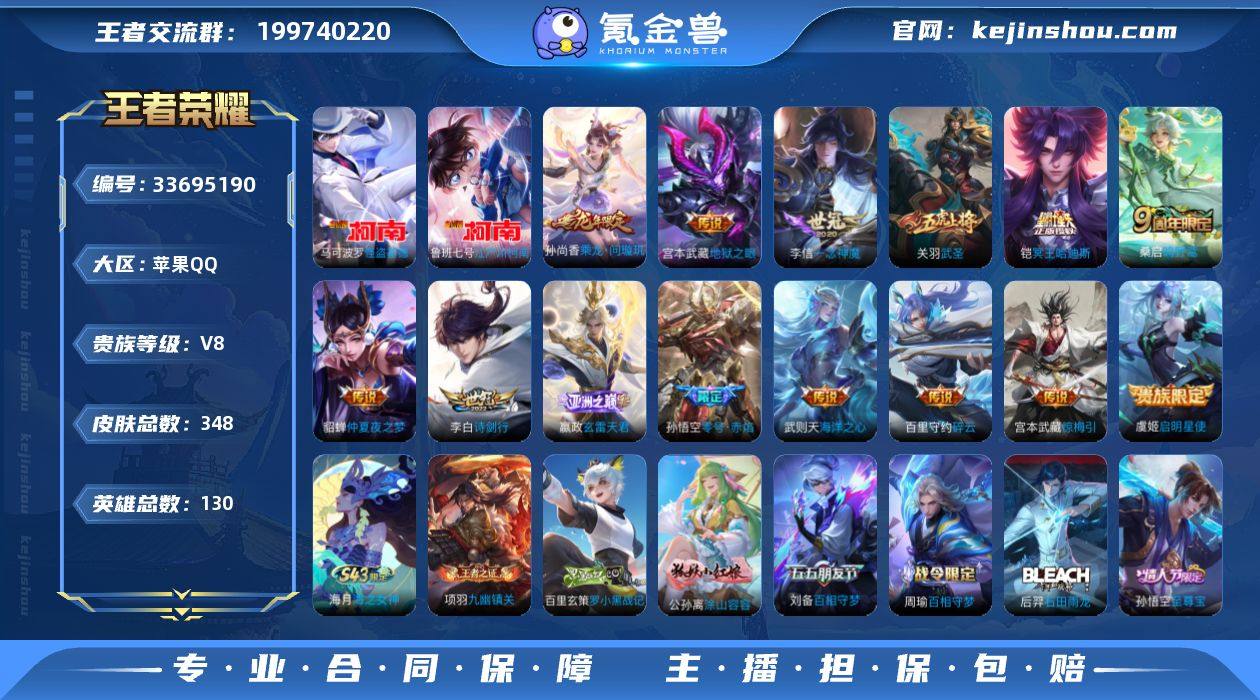 3星传说,苹果Q-V8-永恒钻石I段位-130英雄-348皮肤-1典藏英雄-2珍品传说-14传说-98史诗 【英雄全皮】:刘邦全皮,孙权全皮,敖隐全皮 【荣耀典藏】:武则天英雄 【珍品传说】:鲁班七号江户川柯南,马可波罗怪盗基德 【传说皮肤】:嬴政玄雷天君,桑启鸣野蒿,铠冥王哈迪斯,孙尚香乘龙问璇玑,宫本武藏惊梅引,李白诗剑行,百里守约碎云,虞姬启明星使,孙悟空零号赤焰,关羽武圣,李信一念神魔,貂蝉仲夏夜之梦,宫本武藏地狱之眼,武则天海洋之心 【限定皮肤】:铠冥王哈迪斯,蔡文姬夏日便利店,大乔绒语心约,虞姬夏日便利店,姜子牙天穹之誓,李白谪仙醉月,狄仁杰阴阳师,赵云皇家上将,墨子神迹守卫,嬴政白昼王子,孙尚香蔷薇恋人,阿轲迷踪丽影,钟无艳超时空战士,白起夜都怪侠,芈月重明,吕布猎兽之王,吕布御风骁将,周瑜赤莲之焰,元歌云间偶戏,元歌无心,夏侯惇朔风刀,甄姬落雪兰心,典韦穷奇,典韦蓝屏警告,典韦岱宗,马可波罗逐梦之星,马可波罗暗影游猎,狄仁杰魔术师,狄仁杰万华元夜,达摩星际陆战队,达摩沙漠行僧,项羽海滩派对,老夫子醍醐杖,老夫子航海奇遇记,关羽武圣,程咬金演武夺筹,刘邦夺宝奇兵,王昭君午后时光,兰陵王驯魔猎人,兰陵王...