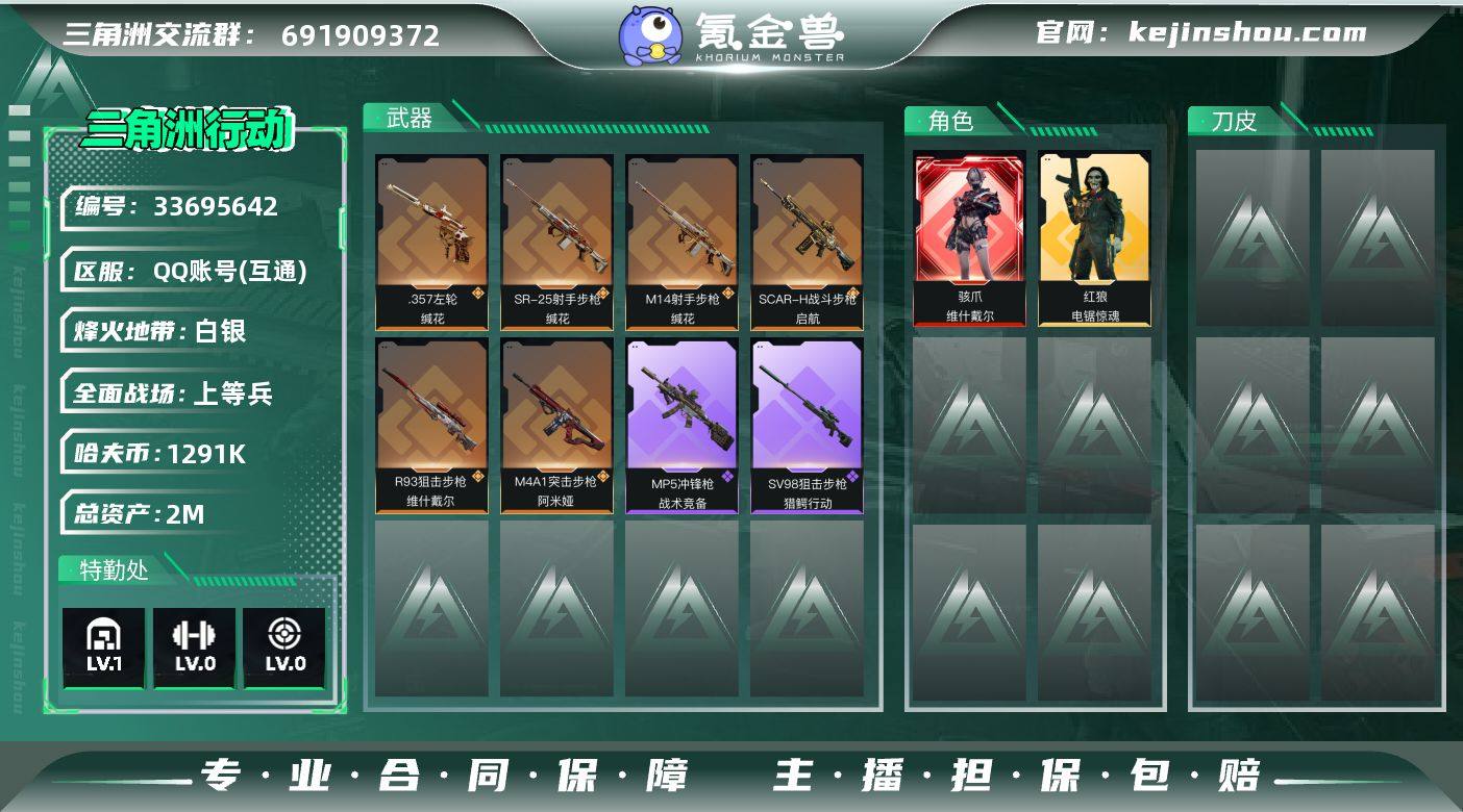 【sjs10263】包人脸 玩够能回血 1红皮维什戴尔 烽火地带段位: 白银 全面战场段位: 上等兵 总资产: 2000000 哈夫币: 1291000 sjs10263 干员外观: 骇爪-维什戴尔,红狼-电锯惊魂 传说武器皮肤: M4A1突击步枪-阿米娅,R93狙击步枪-维什戴尔,SCAR-H战斗步枪-启航,.357左轮-缄花,SR-25射手步枪-缄花,M14射手步枪-缄花 史诗武器皮肤: SV98狙击步枪-猎鳄行动,MP5冲锋枪-战术竞备 载具皮肤: 轮式突击炮-荣耀 亮点: 【sjs10263】包人脸 玩够能回血 1红皮维什戴尔sjs102632m总资产-1291k哈夫币-25烽火等级-白银-20战场等级-上等兵【干员外观】:骇爪-维什戴尔,红狼-电锯惊魂【近战皮肤】:近战-黑鹰【传说外观】:M4A1突击步枪-阿米娅,SCAR-H战斗步枪-启航,M14射手步枪-缄花,SR-25射手步枪-缄花,R93狙击步枪-维什戴尔,.357左轮-缄花【史诗外观】:MP5冲锋枪-战术竞备,SV-98狙击步枪-猎鳄行动【稀有外观】:M7战斗步枪-精英联盟,M7战斗步枪-捣蛋鬼,SCAR-H战斗步枪-荣耀列队,MP5冲锋枪-哈夫克卫队,UZI冲锋枪-亚特兰蒂斯,SMG-45冲锋枪-行动开启,M1014霰弹枪-幻影结构,QJB201轻机枪-哈夫克卫队,Mini-14射手步枪-荣耀列队,SR-25射手步枪-开拓,SV-98狙击步枪-星链科技,SV-98狙...