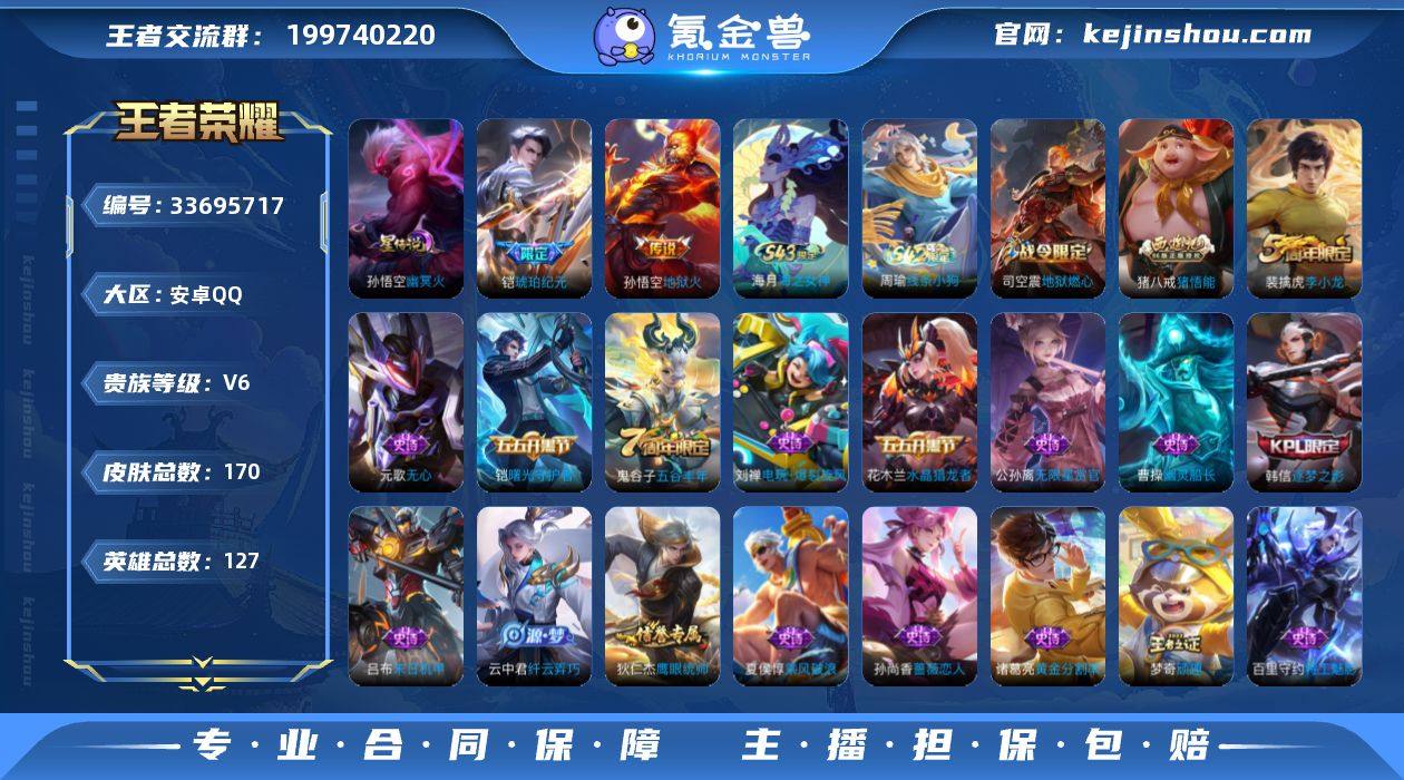 安卓Q-V6-尊贵铂金I段位-127英雄-170皮肤-2传说-37史诗 【传说皮肤】:铠琥珀纪元,孙悟空地狱火 【限定皮肤】:姜子牙天穹之誓,狄仁杰阴阳师,赵云皇家上将,孙尚香蔷薇恋人,庄周高山流水,高渐离玩趣恶龙,元歌无心,狄仁杰魔术师,狄仁杰万华元夜,达摩沙漠行僧,项羽海滩派对,程咬金演武夺筹,韩信逐梦之影,兰陵王金庭之子,李元芳云中旅人,钟馗驱傩正仪,雅典娜黎明之约,鬼谷子原初探秘者,鬼谷子五谷丰年,苏烈千军破阵,百里玄策原初追逐者,梦奇顽趣,沈梦溪大漠名商,裴擒虎李小龙,裴擒虎擒涛扼浪,云中君纤云弄巧,猪八戒猪悟能,鲁班大师探海日志,桑启海盐诗旅,艾琳流音漫舞,司空震地狱燃心,张良古海寻踪,蒙恬荣光圣徽,鬼谷子天穹祈灯,铠琥珀纪元,沈梦溪龙舞盛年,刘邦剑破天穹,程咬金群星魔术团 【赛季限定】:鬼谷子原初探秘者,狄仁杰万华元夜,程咬金演武夺筹,钟馗驱傩正仪,苏烈千军破阵,达摩沙漠行僧,兰陵王金庭之子,沈梦溪大漠名商,李元芳云中旅人,桑启海盐诗旅,裴擒虎擒涛扼浪,鲁班大师探海日志,张良古海寻踪,鬼谷子天穹祈灯,刘邦剑破天穹,姜子牙天穹之誓,东皇太一噬灭天穹,太乙真人谧流熔炉,百里玄策原初追逐者,雅典娜黎...