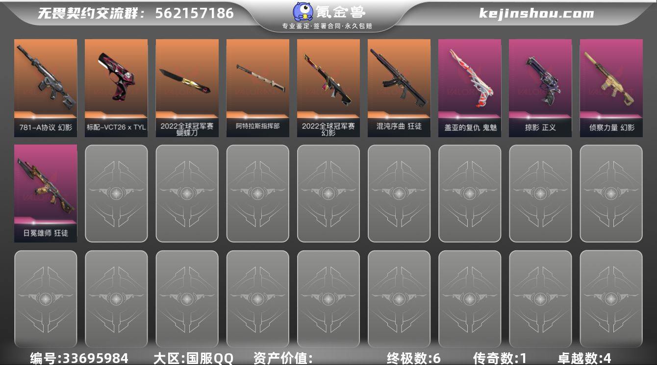 【PTWW3561】LV等级72/皮肤总价值18380/段位黄金/总皮肤数量34/刀皮数量3/枪皮数量31/套装数量1/具体详情请看图/2022全球冠军赛/炼狱/暮蝶/壹决/铁臂/捷风/幽影/不死鸟/贤者/猎枭/零/芮娜/奇乐/尚勃勒/霓虹/斯凯/K/O/盖可/黑梦/蝴蝶刀-2022全球冠军赛/紫金爪刀/阿特拉斯指挥部/狂徒-混沌序曲/狂徒-日冕雄师/幻影-2022全球冠军赛/幻影-781-A协议/幻影-侦察力量/标配-VCT26 x TYL/正义-掠影/鬼魅-盖亚的复仇/南瓜盛典 卡面/无畏契约GO!第一卷:芮娜 卡面/无畏契约GO!第一卷:零 卡面/代号红色 卡面/新兵报到 卡面/V契约 卡面/无畏契约 卡面/买装还是存钱 喷漆/胜利属于无畏契约 喷漆/GLHF 喷漆/无畏契约 喷漆/天外飞客 挂饰/无畏契约 纪念币 挂饰