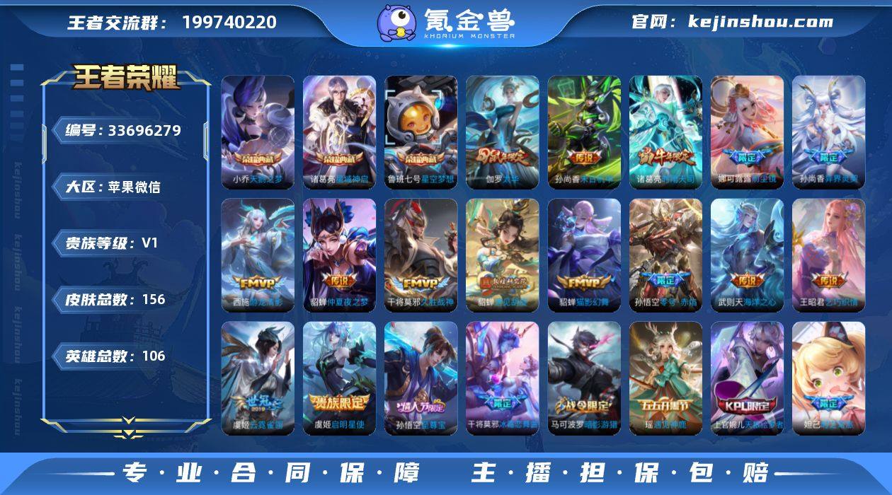 苹果WX-V0-尊贵铂金IV段位-106英雄-156皮肤-3典藏皮肤-1典藏英雄-15传说-57史诗
