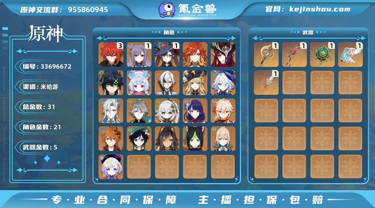 5星角色数: 21