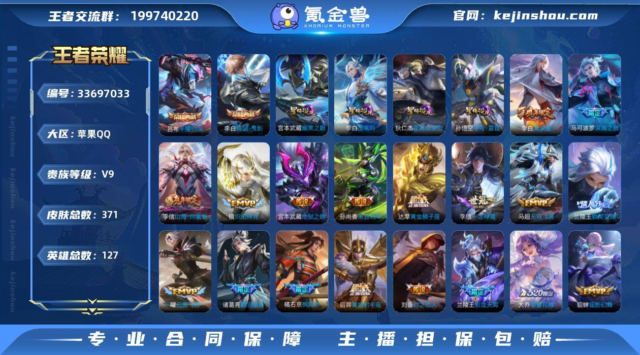 可换绑【特惠精品多限定v9号·吕布李白典藏·影龙天霄·无限倾心·兔年李信·深海之息·枫霜尽·无尽星芒·挚爱花嫁·挚爱之约·默契交锋·凤求凰·玉兔公主·神威·飞衡·贵族积分11w】 10按键,4星传说,1天幕,15王者印记,五级铭文210,可二次,苹果Q-V9-371皮肤-2典藏皮肤-31传说-125史诗【英雄全皮】:孙权全皮,橘右京全皮,猪八戒全皮,鲁班大师全皮,金蝉全皮【荣耀典藏】:李白鸣剑曳影,吕布千魇归渊【天幕】:挚爱童话天幕【星元皮肤】:宫本武藏幽冥之眼,孙悟空零号雷霆,狄仁杰星际治安官,李白玉鸾吟【传说皮肤】:兰陵王影龙天霄,诸葛亮鹤羽星尊,澜电玩雷克斯,张飞百相守梦,项羽无限倾心,李信山海炽霜斩,橘右京枫霜尽,马可波罗深海之息,后羿无尽星芒,马超无双飞将,大乔挚爱花嫁,孙策挚爱之约,赵云淬星耀世,王昭君乞巧织情,兰陵王默契交锋,铠绛天战甲,镜炽阳神光,虞姬启明星使,孙悟空零号赤焰,曜云鹰飞将,李信一念神魔,刘备时之恋人,貂蝉猫影幻舞,虞姬云霓雀翎,达摩黄金狮子座,梦奇胖达荣荣,后羿黄金射手座,李白凤求凰,孙尚香末日机甲,宫本武藏地狱之眼,狄仁杰超时空战士【限定皮肤】:虞姬夏日便利店,李白谪仙醉月,狄仁杰阴阳师,廉颇寅虎...