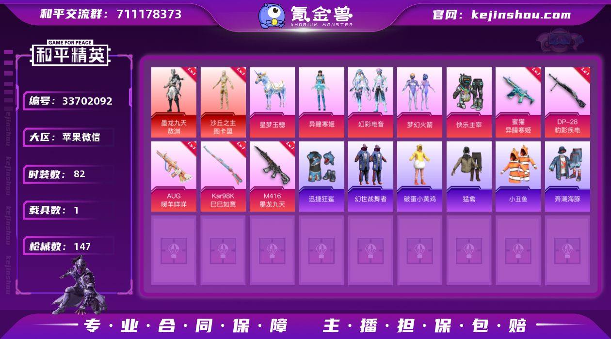 2红装 4粉装 7粉枪 1载具 82套装 147枪皮 11热门 星梦玉骢 沙丘之主-图卡盟 墨龙九天-敖渊 梦幻火箭 快乐主宰 青玉碎影 贵族骑装 竞技名士 浪漫假日 街舞之王 完美偶像 街头潮人 缤纷果语 幻世战舞者 金耀舞者 热血青春 角色-异瞳寒姬 幻彩电音 M416-墨龙九天(3级) 汤姆逊-奇异狩猎者 SCAR-L-黄金龙骨 G36C-镜域双华 Famas-镜域双华 S12K-幻世战舞者 MG3-镜域双华 M249-糯团青竹 AC-VAL-天降萌叽 蜜獾-天降萌叽 AMR-妙红点点 UZI-啾咪啾咪 AMR-白勺歌姬 SKS-迅猛狂鲨 UZI-炫彩节奏 野牛-沙丘之主 SCAR-L-炫彩节奏 AKM-龙的传人 Kar98K-梦幻火箭 S686-彩虹符号 蜜獾-异瞳寒姬(4级) Kar98K-巳巳如意(5级) AUG-暖羊咩咩(5级) DP-28-豹影疾电(5级) 小丑鱼 迅捷狂鲨 M762-天降萌叽 M762-彩虹符号 DBS-彩虹符号 M249-彩虹符号 MG3-幻世战舞者 破蛋小黄鸡 长空猛禽 弄潮海豚 S686-奇异狩猎者 勇闯险境飞行服 梦幻火箭飞行器 龙翔九天飞行器 炫彩糖果飞行器 沙丘之主天马 镜域双华-灵镜之阶 酣梦熊熊飞行器 英伦信使飞行器