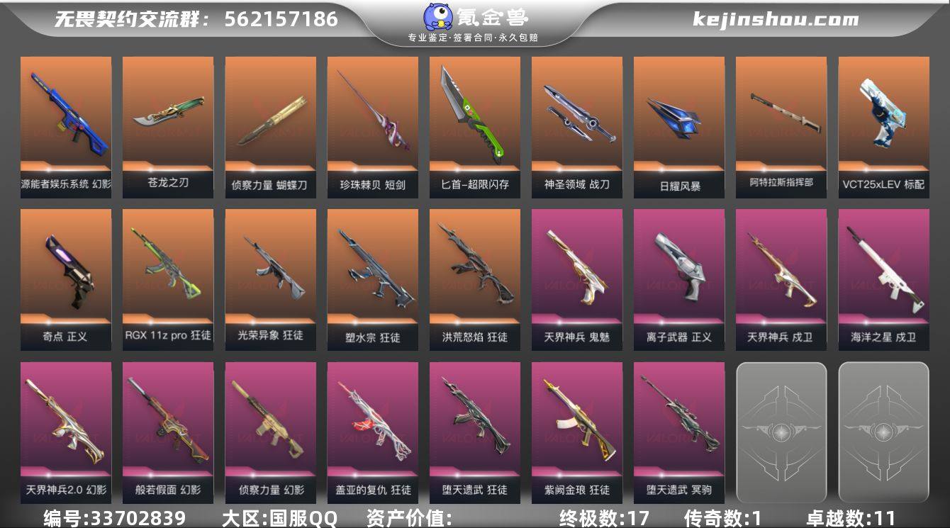 【英雄】:幻棱,炼狱,维斯,暮蝶,钛狐,壹决,铁臂,捷风,雷兹,幽影,不死鸟,贤者,猎枭,蝰蛇,零,芮娜,奇乐,尚勃勒,霓虹,斯凯,夜露,星礈,K/O,海神,盖可,黑梦,钢锁 【近战武器】:近战武器-影钩,近战武器-5周年//公测重制版 苍龙之刃,近战武器-侦察力量 蝴蝶刀,近战武器-剥皮小刀,近战武器-紫金爪刀,近战武器-珍珠棘贝 短剑,近战武器-超限闪存 匕首,近战武器-圣石匕首,近战武器-神圣领域 战刀,近战武器-日耀风暴 遗器,近战武器-阿特拉斯指挥部 甩棍 【狂徒】:狂徒-洪荒怒焰,狂徒-塑水宗,狂徒-RGX 11z Pro,狂徒-光荣异象,狂徒-堕天遗武,狂徒-盖亚的复仇,狂徒-紫阙金琅 【幻影】:幻影-源能者娱乐系统,幻影-般若假面,幻影-天界神兵//2.0,幻影-侦察力量,幻影-超限闪存,幻影-珍珠棘贝,幻影-神圣领域 【戍卫】:戍卫-海洋之星,戍卫-天界神兵,戍卫-珍珠棘贝,戍卫-浮光跃金,戍卫-月球哨兵 【獠犬】:獠犬-神圣领域,獠犬-复古浪潮,獠犬-模拟赫兹 【冥驹】:冥驹-堕天遗武,冥驹-复古浪潮,冥驹-模拟赫兹,冥驹-星云暗涌 【莽侠】:莽侠-超限闪存,莽侠-深海水族,莽侠-月球哨兵 【战神】:战神-神圣领域,战神-浮光跃金,战神-深海水...