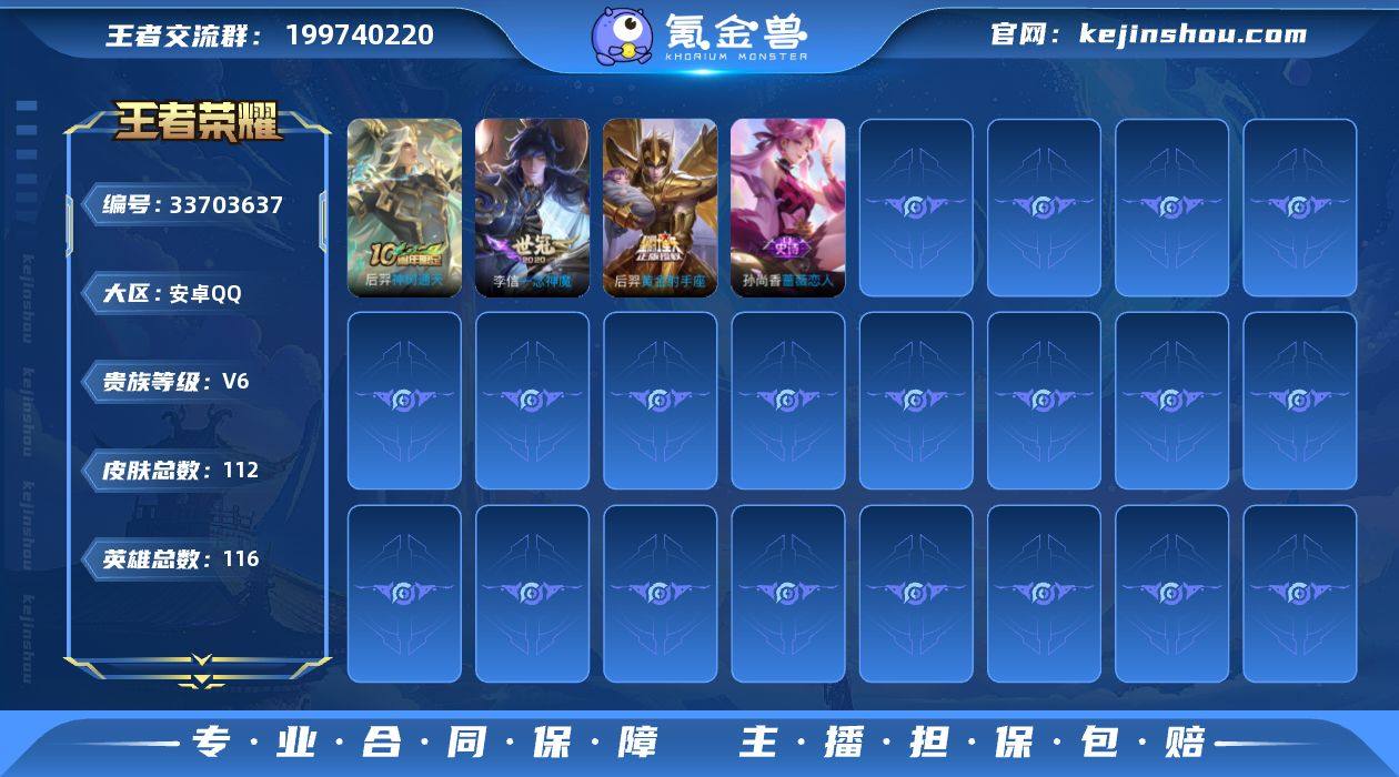 不可二次 安卓Q 8传说116英雄112皮肤 战鼓燎原 逐花归海 神骥赴朔漠 神树通天 愿照山河定 一念神魔 黄金射手座 超时空战士男 万灵启世 撼世英歌 山海玄木吟 冰冠公主 原初追逐者 云间偶戏 黄忠百相守梦 藏狐褐绒 器灵浮梦炉 燃音魔法 真我赫兹镜 天秀音浪 天秀启明 水晶猎龙者 暗隐猎兽者 猫狗日记男 特工魅影 曙光守护者 蔷薇恋人 逐浪之夏 心灵战警 修罗 心灵骇客 圣诞恋歌 幽灵船长 圣诞狂欢 星夜王子 绅士熊喵 暗夜贵公子 街头霸王 箭羽风息 暗渊魔法 摇滚巨星 鬼剑武藏 花好人间 克喵 拳王 皇家上将 魅力维加斯 水果甜心 天穹祈灯 无心 顽岩魄 完美假期 夏日便利店蔡文姬 鹰眼统帅 魔术师 王者荣耀账号