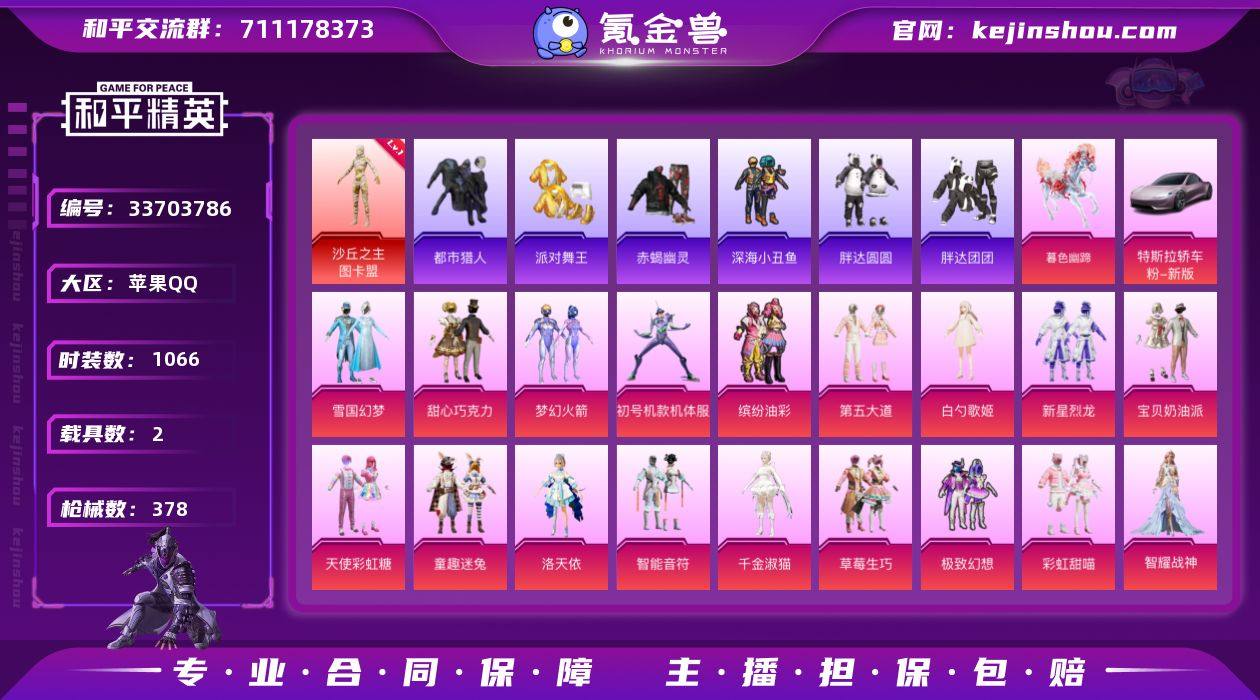 【特价出售】QQ钱包无法注销苹果Q-1红装7稀有2载具27粉装19特效枪42热门296套装378枪皮 139952热力值 26印记 历史传奇王牌24星 【1红装】 沙丘之主-图卡盟 (1级) 【7稀有】 赤蝎幽灵 AKM-缤纷海域 AKM-百万伏特 都市猎人 浪漫天命 派对舞王 派对舞王(金靴子) 【2载具】 暮色幽蹄 特斯拉R沁心粉 【27粉装】 紫螳螂 梦幻火箭 雪国幻梦 蜜语绒猫 宝贝奶油派 天使彩虹糖 甜心巧克力 虹云熊熊 千金淑猫 洛天依 白勺歌姬 智耀战神 智能音符 缤纷油彩 粉色回忆 第五大道 新星烈龙 极致幻想 甜蜜草莓 草莓生巧 暗夜鎏金 童趣迷兔 冰霜白皇 炙焰红王 甜梦小狐 彩虹甜喵 葫芦兄弟 【19特效枪】 SCAR-L-梦幻火箭 (7级) M416-心之恋语 (4级) P90-沙丘之主 (2级) AKM-甜心宝贝 (7级) AKS-74U-森灵之息 (5级) UMP45-雪国精灵 (7级) Kar98K-巳巳如意 (5级) DP-28-豹影疾电 (5级) AUG-星梦奇缘 (6级) M200-梦海之灵 (2级) Mk14-樱桃泡泡 (2级) GROZA-精灵之光 (2级) GROZA-香水柠檬 (7级) AUG-妙趣可丽 (7级) M416-暖熊萌萌 (7级) Mk14-福马献瑞 (4级) AA12-G-萌骑幻想 (2级) ACE32-萌骑漫游 (2级) 破片手榴弹-招财进宝 (5级) 【42热门】 小丑鱼 龟仙人 萌神柯基 青涩年华 动感兔斯基 潮萌小...