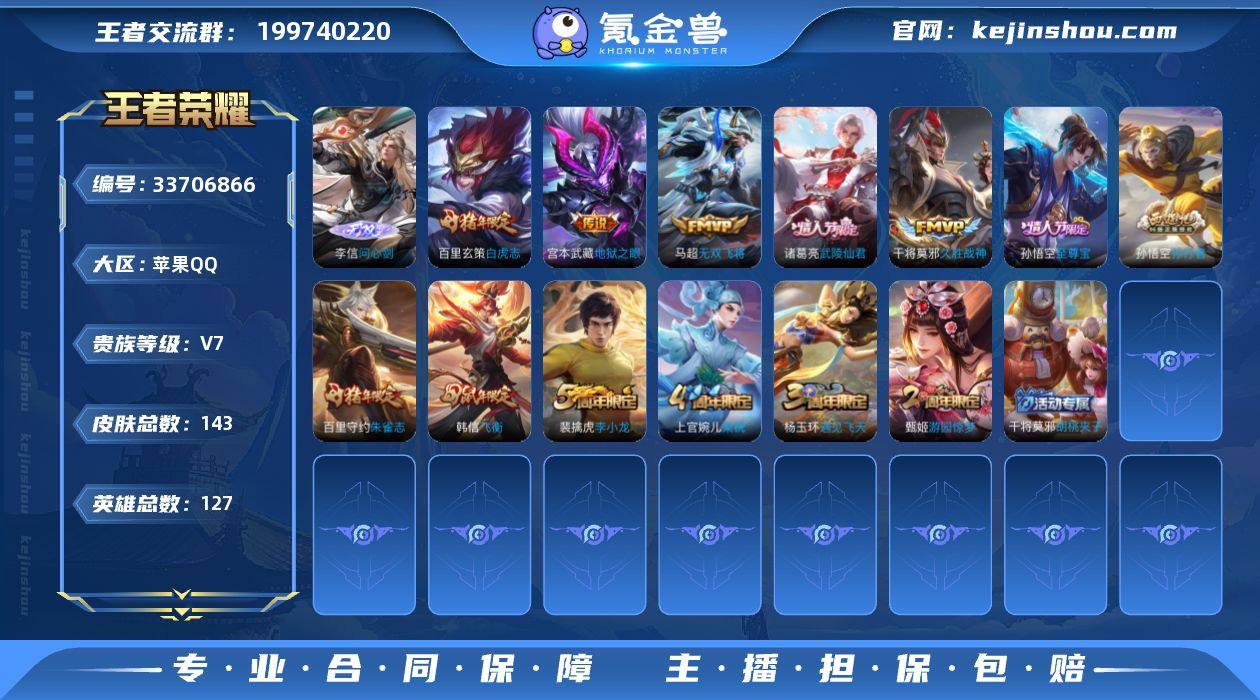 苹果Q 可二次 2无双1珍品9传说127英雄143皮肤 器灵螭龙剑 问心剑 器灵落星盏 异界灵契花木兰 神骥聚万邦 神骥越千峰 白虎志 武陵仙君 异界灵契 无双飞将 久胜战神 地狱之眼 百晓客 至尊宝 白虎志 朱雀志 飞衡 后羿如梦令 拒霜思 孙行者 原初追逐者 黎明之约 梁祝 云间偶戏 遇见神鹿 原初探秘者 李小龙 水晶猎龙者 暗隐猎兽者 金属风暴 地狱岩魂 特工魅影 胡桃夹子 魅语 千年之狐 紫霞仙子 幽灵船长 乘风破浪 圣诞狂欢 星夜王子 节奏热浪 偶像歌手 街头霸王 冰雪圆舞曲 穷奇 御狮 御霄 御旌 御銮 朔风刀 混沌棋 疑决卦 醍醐杖 万华元夜 演武夺筹 驱傩正仪 千军破阵 拳王 沙漠行僧 女仆咖啡 金庭之子 霸王丸 丁香结 科学大爆炸 皇家上将 擒涛扼浪 魅力维加斯 探海日志 水果甜心 古海寻踪 王者之锤 无心 游园惊梦 遇见飞天 乱世虎臣 鹰眼统帅 魔术师 王者荣耀账号