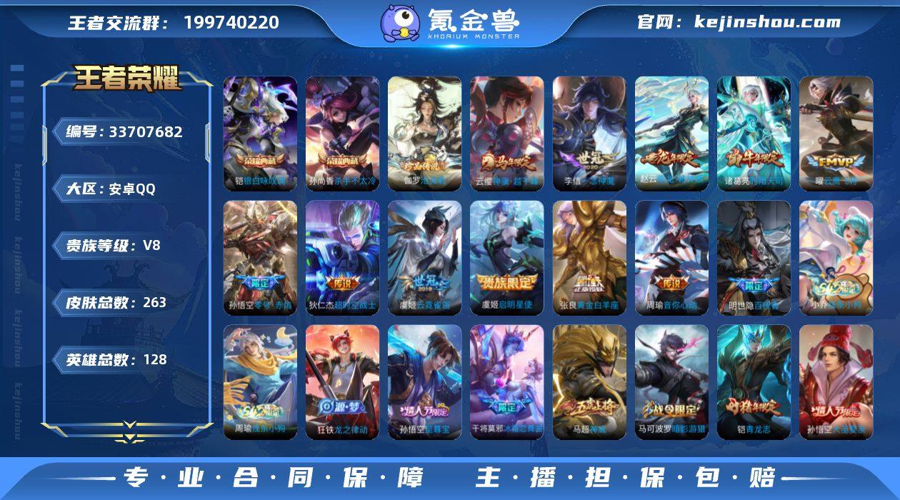 【AZW321】安卓Q-V8-永恒钻石III段位-128英雄-263皮肤-2典藏皮肤-1珍品传说-11传说-69史诗 【英雄全皮】:空空儿全皮 【荣耀典藏】:孙尚香杀手不太冷,铠银白咏叹调 【珍品传说】:伽罗沧流箭 【传说皮肤】:云缨神骥越千峰,赵云乘龙铭钟鼎,周瑜音你心动,诸葛亮时雨天司,虞姬启明星使,孙悟空零号赤焰,曜云鹰飞将,李信一念神魔,张良黄金白羊座,虞姬云霓雀翎,狄仁杰超时空战士 【限定皮肤】:狄仁杰阴阳师,赵云皇家上将,墨子神迹守卫,庄周高山流水,高渐离玩趣恶龙,阿轲迷踪丽影,孙膑天狼运算者,吕布猎兽之王,吕布御风骁将,元歌云间偶戏,夏侯惇朔风刀,曹操天狼征服者,典韦穷奇,马可波罗暗影游猎,狄仁杰魔术师,狄仁杰万华元夜,达摩星际陆战队,达摩沙漠行僧,项羽海滩派对,老夫子醍醐杖,老夫子航海奇遇记,程咬金演武夺筹,刘邦夺宝奇兵,韩信逐梦之影,韩信飞衡,兰陵王金庭之子,花木兰默契交锋,亚瑟潮玩骑士王,孙悟空至尊宝,孙悟空大圣娶亲,孙悟空零号赤焰,牛魔御旌,虞姬启明星使,钟馗驱傩正仪,干将莫邪冰霜恋舞曲,雅典娜单词大作战,雅典娜黎明之约,蔡文姬繁星吟游,鬼谷子原初探秘者,诸葛亮时雨天司,黄忠烈魂,铠青龙志,苏烈千军...