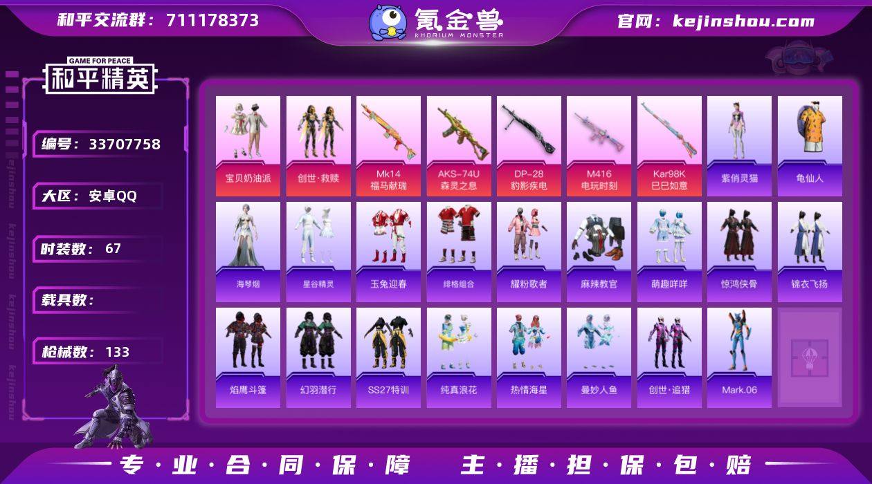 【959764】M1047849【2粉装-5特效枪 宝贝奶油 蓝螳螂】安卓手Q-2粉装-5特效枪-67套装-133枪皮-6王牌印记-超级王牌1星-35172热力值【2粉装】创世·救赎,宝贝奶油派【5特效枪】DP-28-豹影疾电[5级],Mk14-福马献瑞[5级],Kar98K-巳巳如意[5级],AKS-74U-森灵之息[5级],M416-电玩时刻[5级]【3飞行器】粉色滑翔尾迹,马上有福飞行器,歌者泠鸢飞行器【1头盔】甜心宝贝头盔【1背包】甜心宝贝背包【193其它衣服和枪皮】绯格组合,耀粉歌者,智慧隐士,SS32特训,玉兔迎春,创世·追猎,曼妙人鱼,龙的传人,SS34特训,海盐绵绵冰,狙击之神,SS23特训,锦衣飞扬,牛气冲天,柠萌假日,焰鹰斗篷,角色-海琴烟,马上有钱,星谷精灵,角色-紫俏灵猫,竞技名士,SS21特训,虚音幻奏,SS36特训,龟仙人,蝶变,白色伏地魔,幻世战舞者,SS37特训,福马献瑞,SS20特训,角色-Mark.06,遗迹猎人,牛气满满,探宝勇士,SS33特训,迅捷龙虾,SS38特训,战术大师,恋语绒绒,长空猛禽,热血青春,黄色运动,莱茵河畔,甜心亚梦,萌趣咩咩,夏雨游龙,热情海星,熠彩粉晶,妙红点点,娇憨猪猪,冰河战士,冷焰舞者,SS27特训,纯真浪花,SS35特训,幻羽潜行,龙魂突击队,魅力单车,麻辣教官,SS31特训,特训学院,惊鸿侠骨,幻彩翩翩,王牌教练,M16A4-甜心亚梦,SCAR-L-...