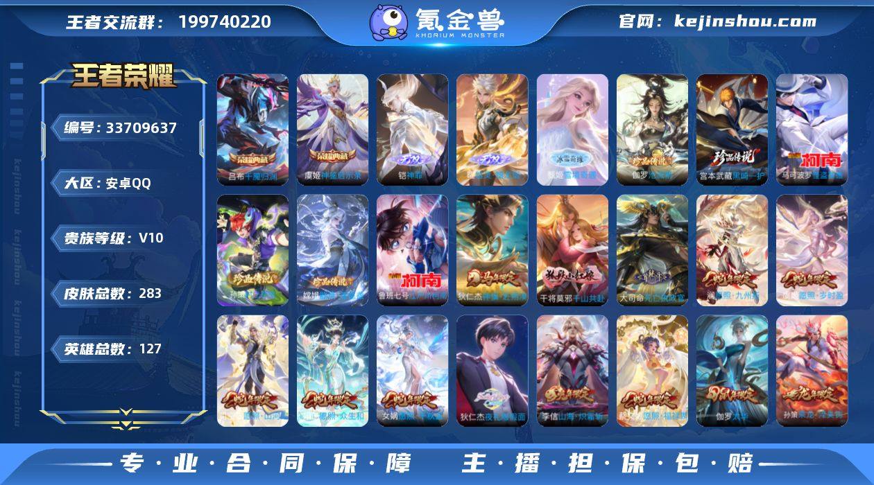 【安卓QQ区】V10 283皮肤 2典藏3无双 限定多 带QQ会员6级+黄钻9级 诚心出 贵族V10 顶配排面:全皮肤共享特权,组队自带高光 体验直接拉满 283款优质皮肤: - 典藏×2:吕布「千魔归渊」、虞姬「神鉴启示录」 - 无双×3:铠「神罪」、曜「器灵·嚯龙剑」、甄姬「雪境奇遇」 - 珍品传说×6:含柯南联动怪盗基德、江户川柯南等限定IP皮肤 - 海量传说/限定/史诗皮 包含神威、青龙志、一念神魔等高人气皮肤 全英雄127个 铭文全满 新号直接上手 不用额外养号 QQ增值业务加持:黄钻9级+QQ会员6级 长期养成老号 安全度拉满 信誉良好无违规 - 自己养成的号 可改实名、可换绑 交易走平台担保,全程无找回风险 - 已解绑所有第三方 安全干净,无任何不良记录 - 支持平台验号 个人原因忍痛割爱 这个号陪了我很久 不管是V10还是QQ的老业务 都是实打实的情怀 真心想找个善待它的新主人 非诚勿扰 秒换绑不拖沓 拍下直接走流程~