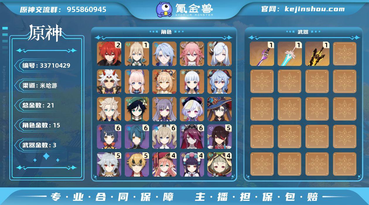 退游老玩家,武器加角色总共21金,可刀,都是些老五星角色偏冷门,喜欢就拍