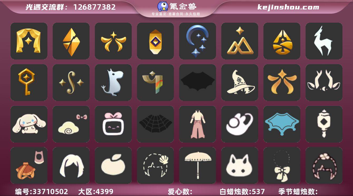 [18996866]华为 手机账号 3珍稀物品 14毕业季 6毕业图 537蜡烛 【珍稀物品】白枭(帝企鹅发),透明蝶翼斗,彩虹围巾(五塑彩带斗) 【季节已毕业】表演季,破晓季,欧若拉季(欧若拉),追忆季,夜行季,拾光季,归巢季,九色鹿(九色鹿季),筑巢季,二重奏季,姆明季,彩染季,双星季,迁徙季 【完成地图】晨岛,云野,雨林,霞谷,墓土(暮土),禁阁 【礼包】牛仔裤(阔腿牛仔),兔子鞋(兔子拖鞋),雪人鞋(圣诞雪人靴),蝴蝶结(大蝴蝶结),活力海牛礼包,奔跑发型(奔离远行发),巫师(巫师帽),橘子(大橘大利),贝壳(贝壳发饰),兔子(玉兔头饰)(玉兔发饰)(兔子发饰),四叶草(四叶草头饰),九色鹿角(神鹿祝福头饰)(神鹿祝福礼包),创始人(创始人斗篷),欧若拉之翼,莲花斗(异彩莲花斗篷),线框斗篷礼包(周年线框斗篷),遥鲲披肩斗篷(披肩外袍),蝙蝠套(蝙蝠斗篷)(南瓜头),蜘蛛斗(蛛丝斗篷)(蛛网斗篷),透明蛛丝(透明蜘蛛斗),瑞雪(瑞雪斗篷)(暖冬瑞雪),大耳狗服饰(大耳狗斗篷)(云朵斗篷),风之旅人(风之旅人礼包),青衫落拓礼包,灯笼(中秋灯笼),黄伞(夏日阳伞),海牛玩偶礼包,南瓜(冥龙南瓜),大耳狗抱枕,大铁头 【裤子】筑巢季·裤子(设计师长袍),妮妮裙子(妮妮长裙),蓝绿裤(高领舞服),武士裤,背带裤,搓澡巾,击剑裤 【面具】黄眉...