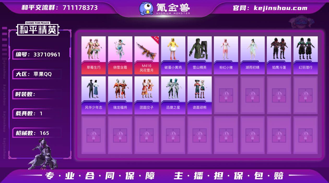 XS11606【载具1 粉装2 特效枪1 风花雪月7级 】苹果手Q-1载具-2粉装-1特效枪-120套装-165枪皮-3王牌印记-坚韧铂金Ⅱ-52044热力值【1载具】阿斯顿·马丁DBS(红)【2粉装】草莓生巧,俏雪含霜【1特效枪】M416-风花雪月[7级]【2稀有】汤姆逊-奇异狩猎者,UMP45-怪兽之王【3飞行器】梦幻火箭飞行器,红色滑翔尾迹,终极赛罗飞行器【1头盔】马卡龙头盔【2背包】心之恋语背包,甜心宝贝背包【280其它衣服和枪皮】科技之星,SS17特训,长空猛禽,电音精灵,粉红小猪,蓝彩潮人,众神之王,瑞龙福将,田园牧歌,竞技名士,怒火燎原,竞技勇士朋克,SS12特训,幻羽潜行,光之冒险,牛气满满,SS23特训,SS7特训,SS33特训,SS25特训,跃动心情,萌趣颜团子,SS5特训,SS16特训,海盐绵绵冰,角色-灵公主,SS31特训,破蛋小黄鸡,海上生明月,吉莉礼服,狙击之神,龙的传人,SS26特训,甜蜜熊情侣,治愈之星,银白舞王,焰鹰斗篷,SS21特训,暴风机械师,迅捷之星,原初圣火,特战装甲,时空追击者,萌黄之夏,神秘领域,坚韧舞者,酷潮明星,SS32特训,人气偶像,SS18特训,夏日音浪,北国孤狼,幽夜迷踪,冰川格斗者,SS15特训,SS19特训,SS27特训,冰川特警,轻风白浪,耀粉歌者,诡面顽熊,异彩先驱,飞行日记,福星高照,蓝色守护者,SS20特训,音速流光,青春...