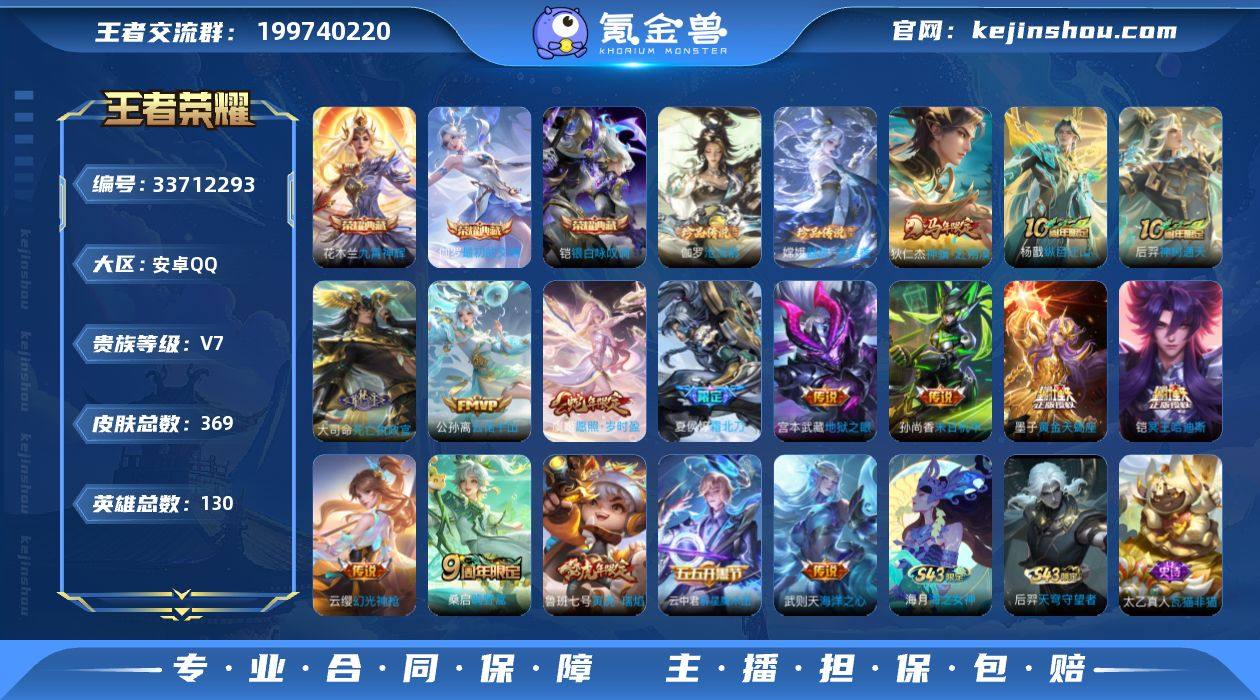 【LWZC3897】安卓Q-V7--369皮肤-3典藏皮肤-1典藏英雄-2珍品传说-16传说【荣耀典藏】:武则天英雄,花木兰九霄神辉,铠银白咏叹调,伽罗最初的交响【珍品传说】:伽罗沧流箭,嫦娥器灵落星盏【优质皮肤】至尊宝【年限皮肤】:鲁班七号寅虎瑞焰,虞姬愿照岁时盈【传说皮肤】:狄仁杰神骥赴朔漠,杨戬纵目迁山,后羿神树通天,大司命死亡执政官,公孙离云诺千山,虞姬愿照岁时盈,云缨幻光神枪,桑启鸣野蒿,夏侯惇霜北刀,铠冥王哈迪斯,云中君群星魔术团,墨子黄金天蝎座,鲁班七号寅虎瑞焰,孙尚香末日机甲,宫本武藏地狱之眼,武则天海洋之心【优质皮肤】至尊宝