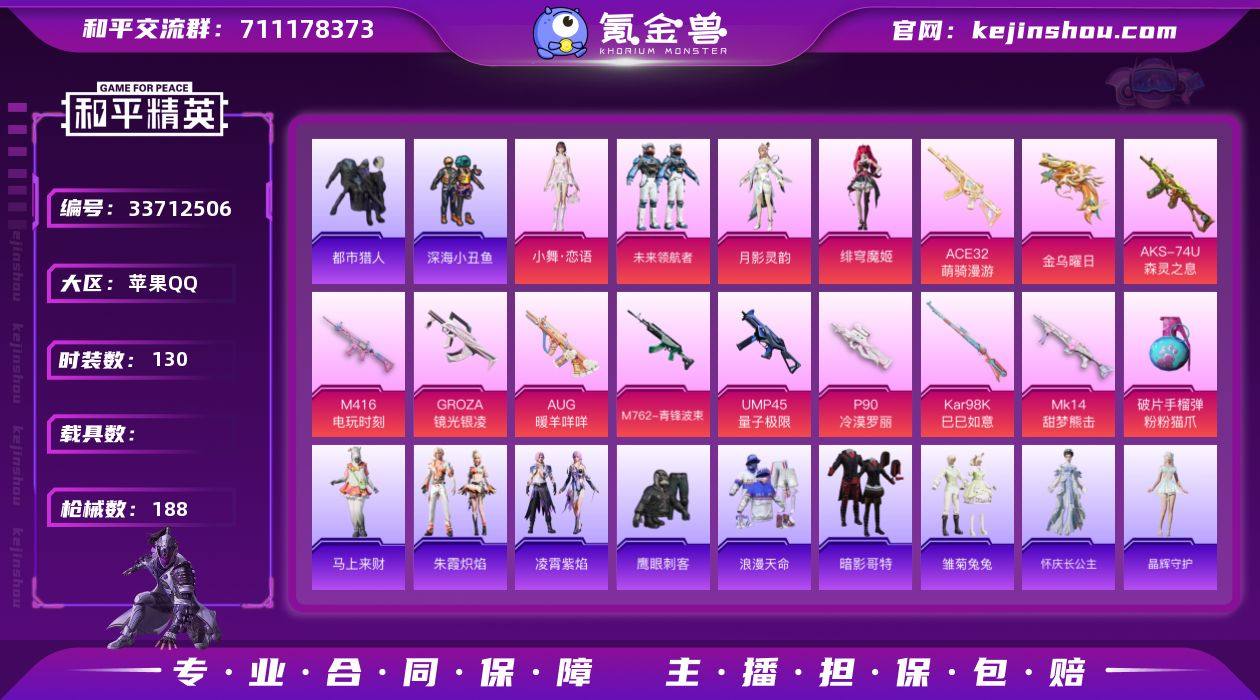 【959827】DYH18180【身法号4粉装-13特效枪深海小丑鱼 哥特暗影 都市猎人 浪漫天命 小丑鱼 菠萝头】苹果手Q-4粉装-13特效枪-130套装-188枪皮-9王牌印记-不朽星钻Ⅳ-55709热力值【4粉装】未来领航者,人物-小舞·恋语,角色-月影灵韵,角色-绯穹魔姬【13特效枪】ACE32-萌骑漫游[3级],M416-电玩时刻[5级],Kar98K-巳巳如意[5级],Mk14-甜梦熊击[5级],破片手榴弹-粉粉猫爪[7级],UMP45-量子极限[5级],Mk14-福马献瑞[5级],AUG-暖羊咩咩[5级],GROZA-镜光银凌[5级],P90-冷漠罗丽[7级],M762-青锋波束[5级],AKS-74U-森灵之息[5级],信号枪-金乌曜日[4级]【6稀有】小丑鱼,狂沙舞者,都市猎人,深海小丑鱼,浪漫天命,暗影哥特【12飞行器】顶峰精英尾迹,极意拳锋飞行器,登顶巅峰飞行器,马上有福飞行器,狂鲨锋刃飞行器,异域银装飞行器,祥瑞起舞飞行器,光之冒险尾迹,沙丘之主天马,炫彩糖果飞行器,梦幻童话飞行器,破刃行动尾迹【1头盔】百万伏特头盔【1背包】金羽特工背包【295其它衣服和枪皮】角色-摩登魅猫,湖畔霞光,冰冻风暴,海岛探路者,异域银装,画境星梦,完美偶像,橘黑制服,绿洲跃动,雏菊兔兔,霓彩节奏,彩虹兔,炫彩糖果,大漠长歌,风迹短诗,蝶变,灼焰舞者,阳光火鸡,大橘大利,棉花软糖,SS35特训,特殊...