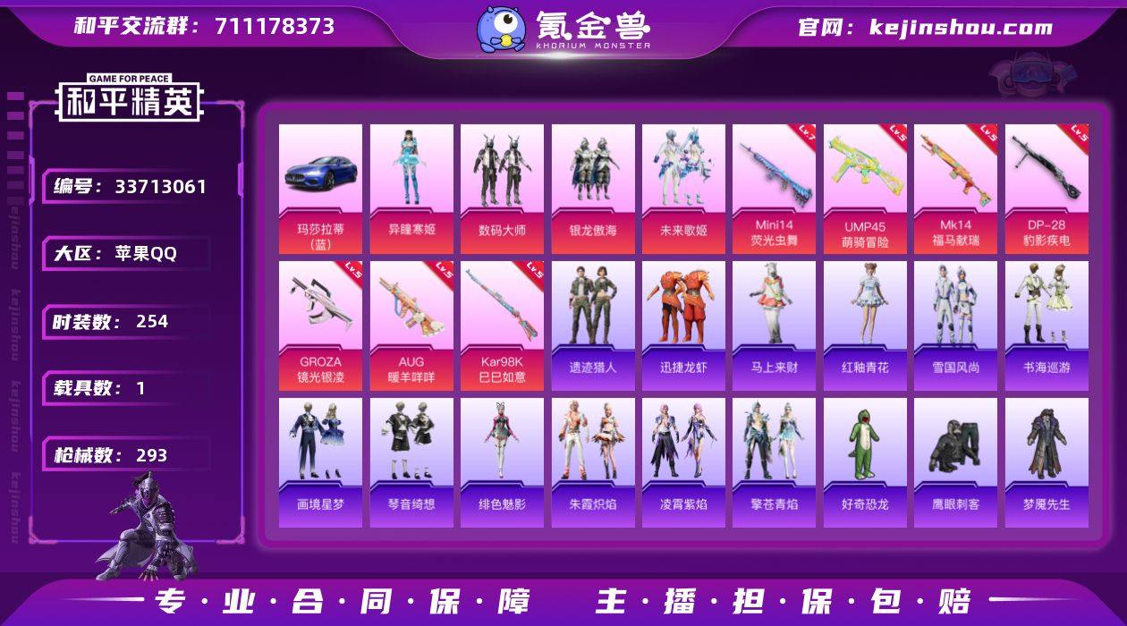 【AZH3673】苹果 手Q【暗影哥特浪漫天命 满级荧光虫舞Mini14 粉熊背包 1载具】4粉装-7特效枪-1载具-1粉色飞行器-90893热力值-12王牌印记-254套装-293枪皮 【热门品类】:套装-浪漫天命,角色-军刀雅典娜,套装-金羽特工,旭日初心兜帽大衣,套装-暗影哥特,套装-粉红小猪,熔岩游骑兵连帽夹克 【粉色套装】:粉装-数码大师,粉装-银龙傲海,粉装-未来歌姬,角色-异瞳寒姬 【粉色枪皮等级】:GROZA-镜光银凌(五级),AUG-暖羊咩咩(五级),UMP45-萌骑冒险(五级),Kar98K-巳巳如意(五级),Mini14-荧光虫舞(七级),Mk14-福马献瑞(五级),DP-28-豹影疾电(五级) 【粉色载具】:玛莎拉蒂Ghibli(蓝) 【粉色枪皮】:GROZA-镜光银凌,AUG-暖羊咩咩,UMP45-萌骑冒险,Kar98K-巳巳如意,Mini14-荧光虫舞,Mk14-福马献瑞,DP-28-豹影疾电 【粉色飞行器】:炫彩糖果飞行器 【粉色降落伞】:快乐主宰降落伞,南瓜骑士降落伞,至尊龙雀降落伞,梦幻火箭降落伞,华贵君王降落伞,神秘黑猫降落伞,四圣焕新降落伞,夏日绵绵冰降落伞,橘柚倾心降落伞,环太平洋降落伞,暗夜鎏金降落伞,星梦奇缘降落伞,千金淑猫降落伞,月影灵韵降落伞,炫彩糖果降落伞 【稀有套装】:套装-炽纹蛇影,套装-巳巳...