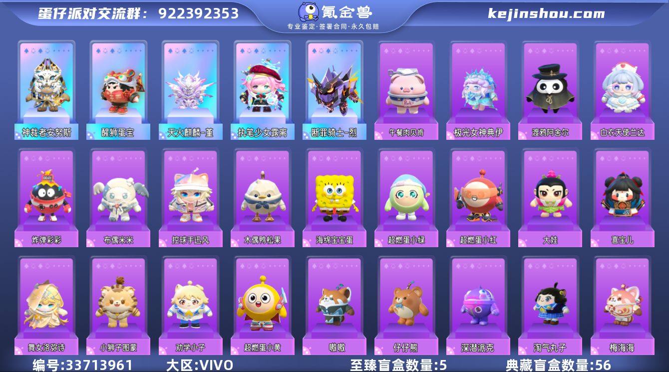 【1载具5至臻56典藏19至臻配饰累充星河弹弹车天火麒麟堇醒狮蛋宝神裁者安努斯执笔少女露离断罪骑士烈午餐肉贝肯海盐布丁嘟嘟海绵宝宝蛋泰菲杰瑞汤姆失心熊灰太狼懒羊羊梅海海松山山喂我花生蝴蝶花环斑斓视界像素眼镜限定大翅膀业火之翼堇醒狮靠旗异想泡泡霜糖风车摇潮汐贝壳椅玩具奶龙招财椅玩具有互动特效决战技特效有揪出捣蛋鬼座椅】账号类型: 手机账号 段位: 三阶鸡蛋 热门装扮: 梅海海,灰太狼,懒羊羊,佣兵,松山山,仔仔熊,深潜派克,淘气丸子,断罪骑士-烈,醒狮蛋宝,虎皮卷大灰狼,饶舌诗人,失心熊,仓鼠米仔,刺猬绷绷,元气丸子,极光女神典伊,小灰灰,美羊羊,菜鸟笨笨,仙人掌丘丘,狸猫大力,莓莓甜心兔,雪王,渔女,沸羊羊,发美美,泰菲,汤姆,杰瑞,面包狗松松,爵士舞王杜波,北极熊安安,街头一霸骐哥,凯洛斯先生,大亨波利,沉眠的螺壶,小浮冰霜霜,打菜侠妙妙,暹罗猫,渡鸦阿舍尔,喜宝儿,大娃,神裁者安努斯,舞女洛弥诗,小狮子图蒙,劝学小子,超燃蛋小绿,超燃蛋小黄,超燃蛋小红,白衣天使兰达,炸弹彩彩,执笔少女露离,布偶米米,控球手迅风,木偶鸭松果,天火麒麟-堇,海绵宝宝蛋,海盐布丁嘟嘟,冷面千金竹月,午餐肉贝肯星河弹弹车喂我花生醒狮靠旗,音浪星梦,天使·微光,业火之翼-堇