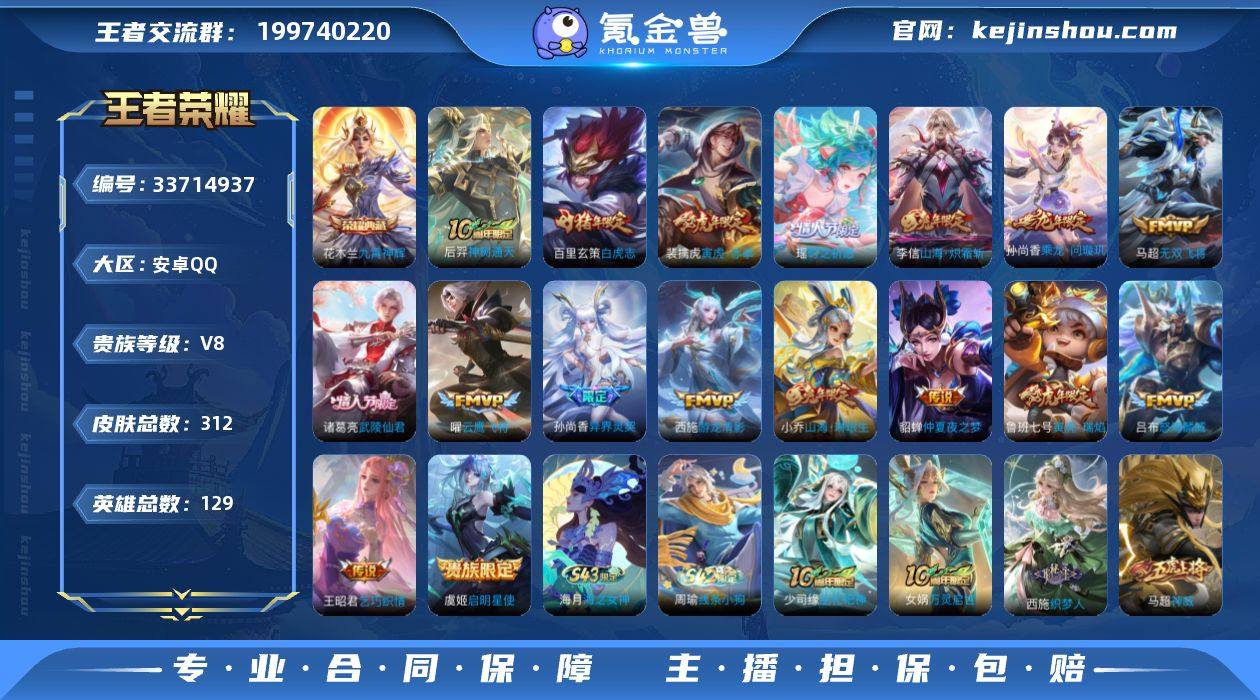 0AY4RY可二次304皮肤水晶1女号传说17优质限定13 信用分合格 钱包已注销 水晶皮肤:九霄神辉, 传说限定:山海·炽霜斩,白虎志,寅虎·赤拳,山海·琳琅生,武陵仙君,异界灵契,乘龙·问璇玑,寅虎·瑞焰,时之祈愿-瑶,神树通天,启明星使, 传说皮肤:怒海麟威,乞巧织情,游龙清影,无双飞将,云鹰飞将,仲夏夜之梦, 新史诗限定:万灵启世,织梦人, 优质史诗皮肤:雪上飞焰,永昼,晚萤,修罗,魅语,遇见神鹿, 周年皮肤:鹤鸣心笺,神树通天, 珍宝阁:优雅恋人,万物之道, 史诗皮肤:地狱岩魂,星夜王子,圣诞狂欢,末日机甲-吕布,无心,乘风破浪,幽灵船长,苍穹之光,功夫厨神,德古拉伯爵,水晶猎龙者,猫狗日记-孙策,未来纪元-赵云,暗夜猫娘,节奏热浪,鬼剑武藏,紫霞仙子,暗隐猎兽者,冰冠公主,黎明之约,曙光守护者,原初追逐者,纤云弄巧,缤纷独角兽,金属风暴,魅力维加斯,女仆咖啡,摇滚巨星,冰雪圆舞曲,心灵骇客,偶像歌手,拒霜思,水果甜心,鹰眼统帅,逐浪之夏,特工魅影,乐园奇幻夜,舞动绿茵=