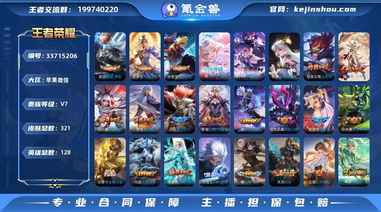 苹果WX-V7-至尊星耀III段位-128英雄-321皮肤-3典藏皮肤-2珍品传说-30传说-93史诗 【英雄全皮】:孙权全皮,敖隐全皮,澜全皮,影全皮 【荣耀典藏】:孙悟空全息碎影,李白鸣剑曳影,花木兰九霄神辉 【珍品传说】:安琪拉酷洛米之心,瑶大耳狗之梦 【传说皮肤】:澜愿照九州拓,云缨幻光神枪,桑启鸣野蒿,马超琥珀纪元,澜逐花归海,澜电玩雷克斯,夏洛特浮生妄,花木兰燃星之曲,孙悟空齐天大圣,李信山海炽霜斩,马超无双飞将,露娜启示之音,兰陵王默契交锋,公孙离祈雪灵祝,诸葛亮时雨天司,虞姬启明星使,孙悟空零号赤焰,关羽武圣,曜云鹰飞将,刘备时之恋人,貂蝉猫影幻舞,达摩黄金狮子座,百里玄策白虎志,后羿黄金射手座,貂蝉仲夏夜之梦,李白凤求凰,孙尚香末日机甲,宫本武藏地狱之眼,孙悟空地狱火,狄仁杰超时空战士 【限定皮肤】:白起狰,蔡文姬夏日便利店,虞姬夏日便利店,姜子牙天穹之誓,李白谪仙醉月,狄仁杰阴阳师,赵云皇家上将,赵云引擎之心,赵云百木心枪,嬴政白昼王子,庄周云端筑梦师,吕布猎兽之王,吕布御风骁将,元歌云间偶戏,元歌无心,典韦蓝屏警告,马可波罗逐梦之星,马可波罗暗影游猎,狄仁杰魔术师,狄仁杰万华元夜,达摩沙漠行僧,...