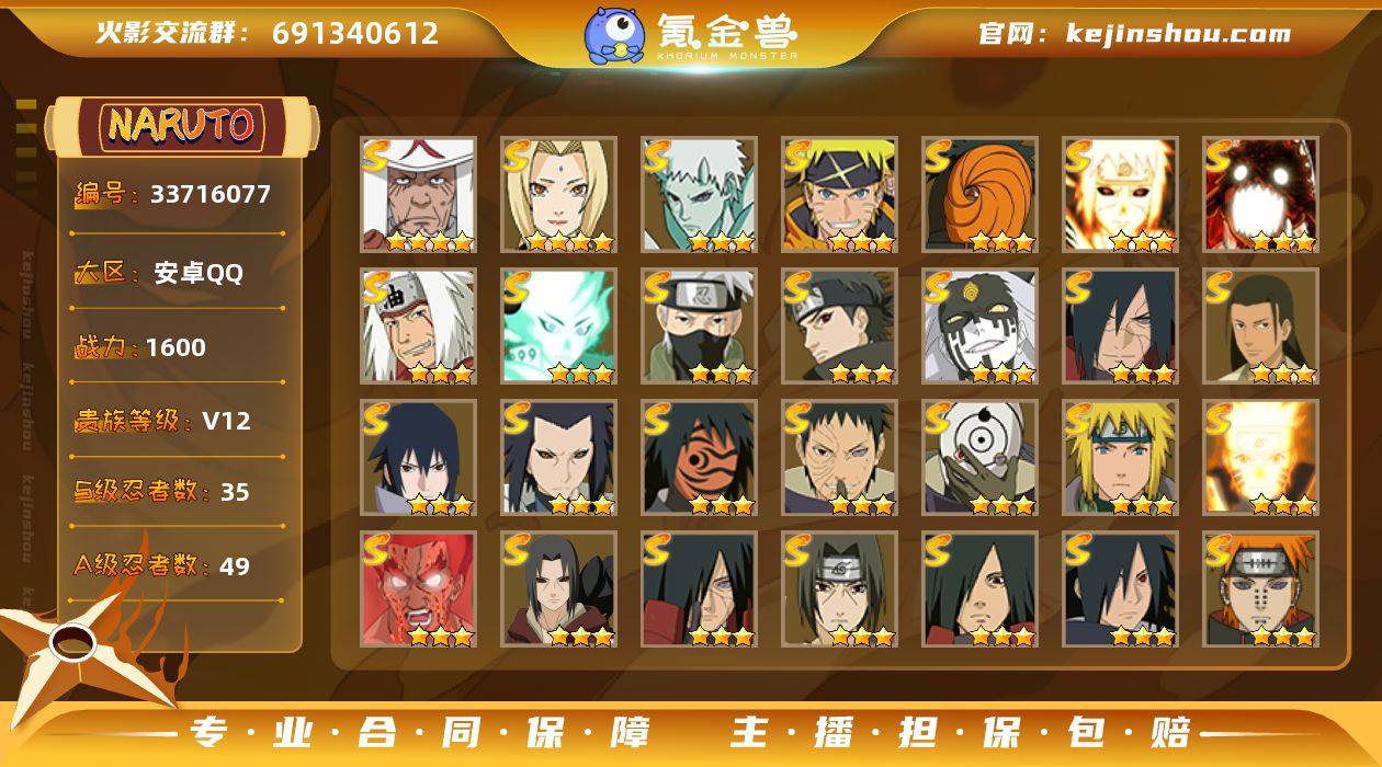 【精品性价比】y7273 v12 战力1600w 35s49a 11个点卷a 秽土扉间62 超哥72碎片 5w左右金币 4个传承时装 主场景“雨隐村” 个性名片“忍界霸主”
