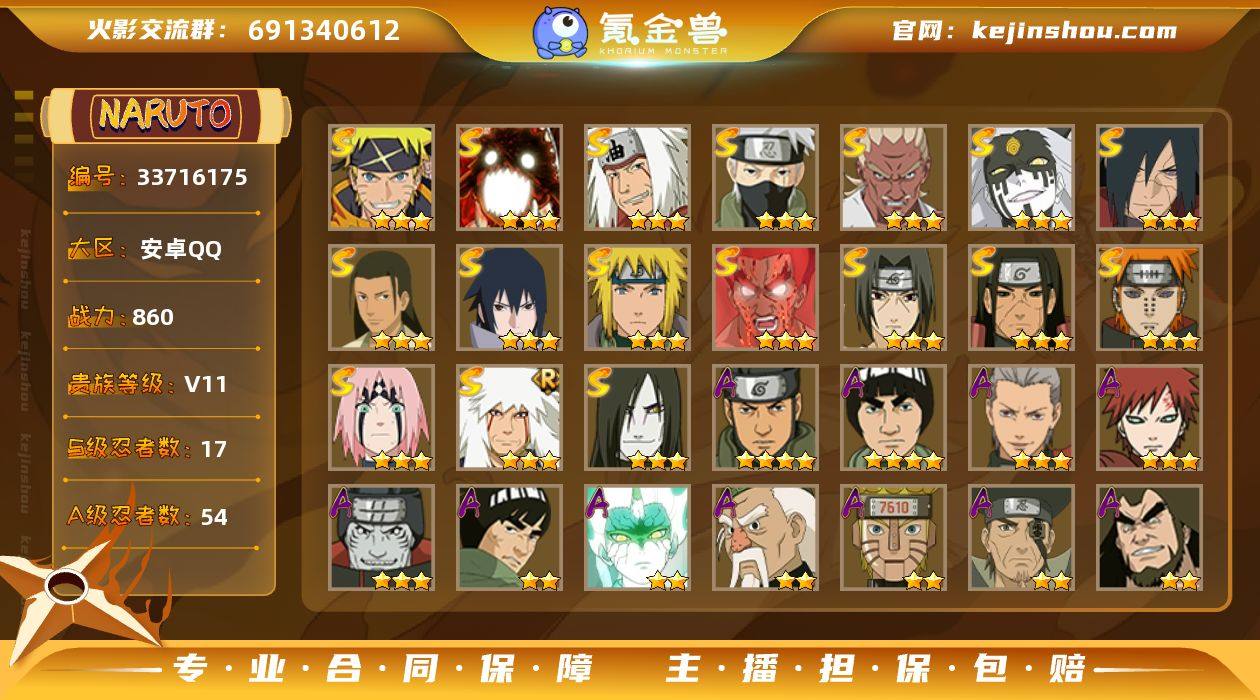 【性价比中配号 手慢无】y7418 战力860w 17s 54a 夏日乌鸦 13个198a 1w3金币 800点券 51抽 25忍法帖已开58级 武士再不斩+面麻时装 59片金水 75片须佐止水 89片红面具 59片十尾带土 45片忍战大野木