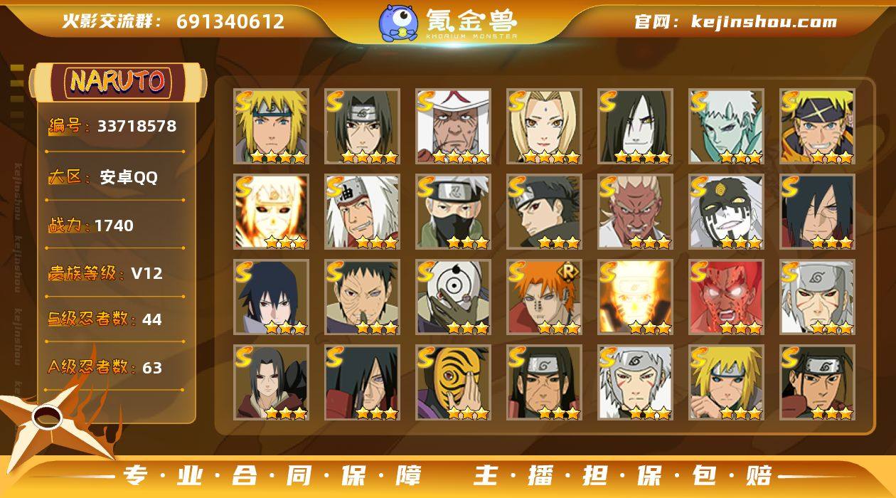 【精品性价比 带超哥黑绝】y7673 战力1740w 44s 63a 3个98通灵 3w金币+28高招卷 1个298+7个198a 博人传主场景 大野木98片 舍人80片