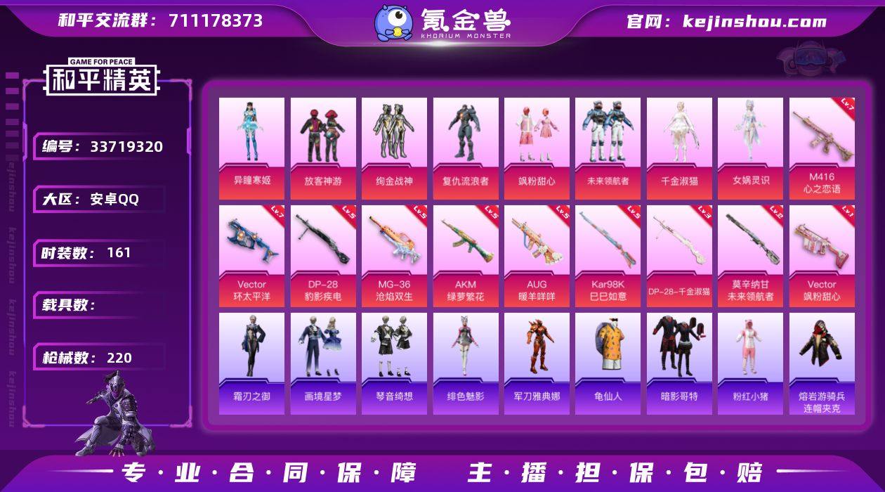 安卓 手Q-8粉装-10特效枪-0载具-1粉色飞行器-66208热力值-9王牌印记-161套装-220枪皮 【热门品类】:角色-军刀雅典娜,套装-龟仙人,套装-暗影哥特,套装-粉红小猪,熔岩游骑兵连帽夹克 【粉色套装】:粉装-放客神游,粉装-绚金战神,角色-复仇流浪者,粉装-飒粉甜心,粉装-未来领航者,角色-千金淑猫,角色-女娲灵识,角色-异瞳寒姬 【粉色枪皮等级】:AKM-绿萝繁花(五级),M416-心之恋语(七级),AUG-暖羊咩咩(五级),Vector-环太平洋(七级),Vector-飒粉甜心(一级),Kar98K-巳巳如意(五级),莫辛纳甘-未来领航者(二级),DP-28-千金淑猫(三级),DP-28-豹影疾电(五级),MG-36-沧焰双生(五级) 【粉色枪皮】:AKM-绿萝繁花,M416-心之恋语,AUG-暖羊咩咩,Vector-环太平洋,Vector-飒粉甜心,Kar98K-巳巳如意,莫辛纳甘-未来领航者,DP-28-千金淑猫,DP-28-豹影疾电,MG-36-沧焰双生 【粉色飞行器】:镜光幻境飞行翼 【粉色降落伞】:环太平洋降落伞,旋转彩虹降落伞,未来歌姬降落伞,炫光之旅降落伞,莲影清波降落伞,蜜语绒猫降落伞,精灵梦叶罗丽降落伞,时空协奏降落伞,未来领航者降落伞,千金淑猫降落伞,月影灵韵降落伞,智耀战神降落伞,无垠阁降落伞,异瞳寒姬降落伞...