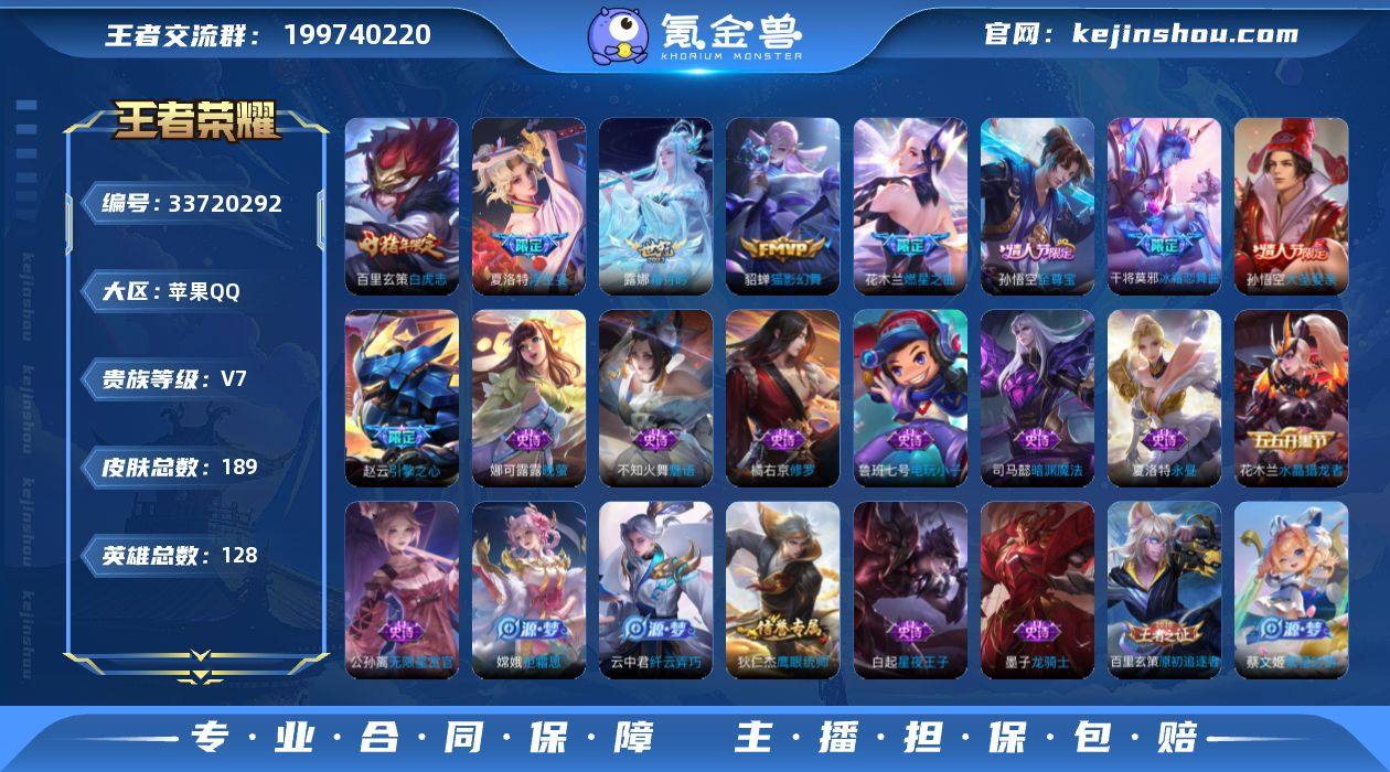 8英雄 189皮肤 可二次 可修改实名 男号 【英雄全皮】蚩奼全皮,夏洛特全皮,大禹全皮 【稀有英雄】大司命,嬴政(始皇帝),韩信(韩跳跳),夏洛特(夏师傅),艾琳,橘右京(橘子),娜可露露(鸟人),不知火舞,赵云,金蝉(唐僧),戈娅 【传说皮】神树通天,末日机甲-孙尚香(绿蚂蚱),猫影幻舞,燃星之曲,浮生妄,霜月吟,澜逐花归海 【珍宝阁皮】优雅恋人,玩趣恶龙 【赛季/战令皮】海盐诗旅(s30),擒涛扼浪(s31),探海日志(s32),天穹祈灯(s34),狰(s8),饕餮(s9),烛龙(s10),重明(s11),穷奇(s12),御霄(s14),御旌(s15),朔风刀(s17),混沌棋(s18),疑决卦(s19),醍醐杖(s20),原初探秘者(s21),万华元夜(s22),演武夺筹(s23),驱傩正仪(s24),千军破阵(s25),神迹守卫-墨子,航海奇遇记,沙漠行僧(s26),金庭之子(s27),云中旅人(s29) 【史诗皮】线条小狗-周瑜,巫礼祀神,紫霞仙子,电玩小子(小书包),永昼,魅语,龙骑士(小龙虾),晚萤,无限星赏官,乱世虎臣,修罗,摇滚巨星,水果甜心,星夜王子,时之奇旅-安琪拉,鬼剑武藏,暗渊魔法,心灵战警,纤云弄巧,繁星吟游(呼啦呼啦),拒霜思,水晶猎龙者,唤灵魅影,金属风暴,原初追逐者,圣诞狂欢,圣诞恋歌,鹰眼统帅,暗夜贵公子,魅力维加斯,赏金猎手,无心 【限定皮】逐霄战戟,鸣野蒿,至尊宝,白...
