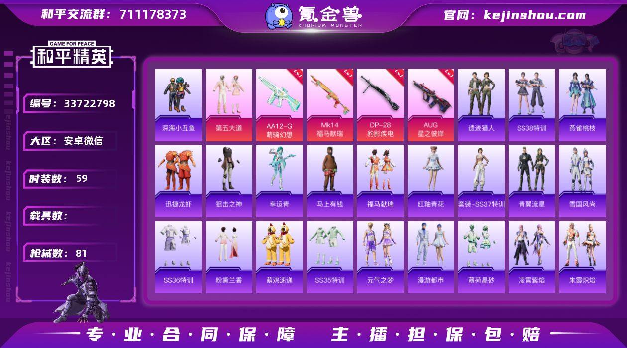 可二次【AUG星之彼岸深海小丑鱼4特效枪1粉装 V社交 游戏正常】 安卓V区-20026热力值-59套装-81枪皮 【1粉装】 第五大道【4特效枪】 Mk14-福马献瑞(5级) AA12-G-萌骑幻想(3级) AUG-星之彼岸(4级) DP-28-豹影疾电(5级)【103热门】 深海小丑鱼 迅捷狂鲨 军刀雅典娜 极速红龙 AKM-缤纷海域 AKM-环太平洋 MG3-幻世战舞者 呆萌铁蟹 M416-蓝色火焰 M762-第五大道 魅力单车 蓝色运动 橘黑制服 黄色运动 黄色伏地魔 红色运动 黑色伏地魔 海岛探路者 AA12-G-雨过天青 沙漠之鹰-雨过天青 P90-紫矿核心 GROZA-紫矿核心 M16A4-雨过天青 雨过天青 MG-36-薄荷星砂 GROZA-福马献瑞 SS34特训 漫游都市 朱霞炽焰 撬棍-冰晶雪宝 福马献瑞 凌霄紫焰 莫辛纳甘-鸢尾珑雾 ACE32-冰晶雪宝 擎苍青焰 青翼流星 SS33特训 游乐 粉黛兰香 狂鲨锋刃 SS36特训 大砍刀-像素花束 MG3-火熔核心 幸运青 JS9-凌霄紫焰 MG-36-凌霄紫焰 蜜獾-启元战纹 迅捷龙虾 马上有钱 ARX-凌霄紫焰 GROZA-荧海星豚 P92-凌霄紫焰 平底锅-凌霄紫焰 狙击之神 ARX-像素花束 Mk14-紫晶流影 幻世保卫者 M417-玩趣呆呆 撬棍-环太平洋 Mk14-薄荷星砂 AUG-紫晶流影 AMR-鸡智如我 SS38特训 M417-锦灰蝶梦 燕雀桃枝 燃烧瓶-福马献瑞 MP7-G-锦...