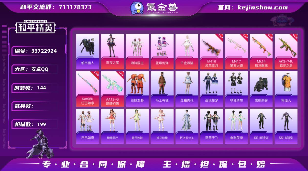 小素材都市可二次安卓 手Q-4粉装-6特效枪-0载具-1粉色飞行器-61615热力值-9王牌印记-144套装-199枪皮TD2642006 【热门品类】:套装-都市猎人,套装-龟仙人 【粉色套装】:粉装-海渊国主,粉装-蓝莓炮弹,角色-千金淑猫,角色-罪夜之冕 【粉色枪皮等级】:M416-风花雪月(七级),AKS-74U-森灵之息(五级),Kar98K-巳巳如意(五级),Mk14-福马献瑞(五级),M417-第五大道(七级),AA12-G-萌骑幻想(三级) 【粉色枪皮】:M416-风花雪月,AKS-74U-森灵之息,Kar98K-巳巳如意,Mk14-福马献瑞,M417-第五大道,AA12-G-萌骑幻想 【粉色飞行器】:太空嘟嘟飞行器 【粉色降落伞】:四圣焕新降落伞,童趣迷兔降落伞,暗夜玫瑰降落伞,蓝莓炮弹降落伞,碧影闪光降落伞,炙焰牛王降落伞,垂柳戏鸭降落伞,旋转彩虹降落伞,月影灵韵降落伞,鬼刀降落伞 【稀有套装】:套装-龟仙人,套装-巳巳如意,套装-马上有钱,套装-迅捷龙虾,套装-糖糖葫芦,套装-青团波波,套装-棉花软糖,角色-怀庆长公主,套装-燕燕于飞,套装-鱼渊荷华,套装-画境星梦,套装-琴音绮想,套装-雨过天青,套装-红釉青花 【稀有枪皮】:AKM-彩虹符号,AKM-影袭,AKM-星之彼岸,AKM-灼热熔岩,AKM-生命誓言,AKM-破晓战魂,AKM...