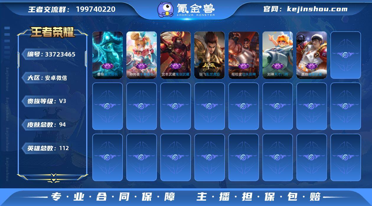 V3 1传说 112英雄 94皮肤 可二次 可修改实名 女号
