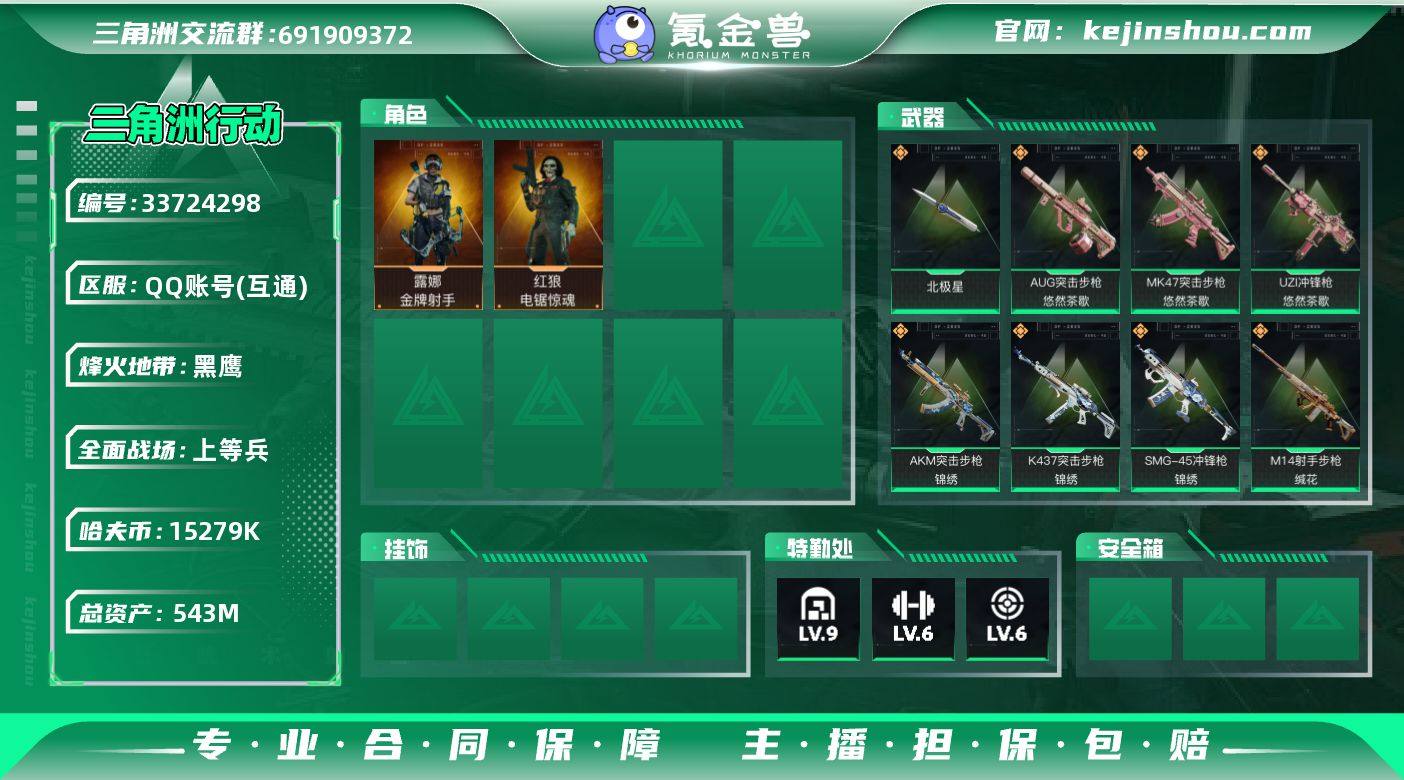 编号A01410 不可二次等级60 总资产543.5m 流动资483.5m 哈夫币15279k 1刀皮 基础安全箱 仓库lv9 训练中心lv6 靶场lv6 近战武器-北极星