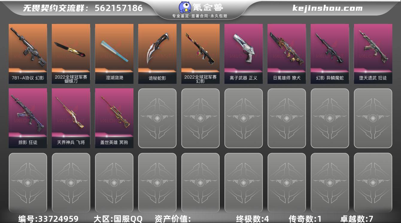 【kywwqy350】【套装】:2022全球冠军赛套装 【英雄】:幻棱,炼狱,维斯,暮蝶,壹决,铁臂,捷风,雷兹,幽影,不死鸟,贤者,猎枭,蝰蛇,零,芮娜,奇乐,尚勃勒,霓虹,夜露,星礈,K/O,盖可,黑梦,钢锁 【近战武器】:近战武器-2022全球冠军赛 蝴蝶刀,近战武器-澄湖潋滟,近战武器-诡秘蛇影 军刀 【狂徒】:狂徒-堕天遗武,狂徒-掠影,狂徒-诡秘蛇影 【幻影】:幻影-2022全球冠军赛,幻影-781-A协议,幻影-异鳞魔蛇,幻影-末日之翼 【戍卫】:戍卫-折光棱晶 【獠犬】:獠犬-日冕雄师 【冥驹】:冥驹-盖世英雄 【飞将】:飞将-天界神兵,飞将-末日之翼 【莽侠】:莽侠-诡秘蛇影 【奥丁】:奥丁-末日之翼 【判官】:判官-诡秘蛇影 【蜂刺】:蜂刺-折光棱晶 【标配】:标配-折光棱晶 【正义】:正义-离子武器,正义-纳米打击 【鬼魅】:鬼魅-诡秘蛇影,鬼魅-星云暗涌 【狂怒】:狂怒-蒙太奇 【短炮】:短炮-蛇吻,短炮-末日之翼 【卡面】:终章:激斗汉堡 卡面,进入射程 卡面,《双城之战》拥抱 卡面,精灵大战 卡面,欢迎来到底城 卡面,南瓜盛典 卡面,修车达人 卡面,正义的化身 卡面,至黑之夜 卡面,铁之华 卡面,梦幻奶茶 卡面,西装暴徒 卡面,源能反应 卡面,...