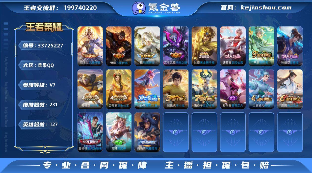 苹果Q 可二次 金标 奕星 伽罗 1典藏8传说 2星传 幽冥之眼 未来机甲 127英雄231皮肤 九霄神辉 乘龙铭钟鼎 万灵伏威 鸣野蒿 武陵仙君 炽阳神光 黄金狮子座 地狱之眼 末日机甲女 巫礼祀神 至尊宝 山海玄木吟 逐霄之志 蜜橘之夏 拒霜思 匿光决锋者 玉兔公主 孙行者 冰冠公主 原初追逐者 黎明之约 梁祝 电玩小子 燃音魔法 伽罗琥珀纪元 刘备百相守梦 原初探秘者 李小龙 水晶猎龙者 暗隐猎兽者 猫狗日记男 猫狗日记女 金属风暴 热力回旋 特工战影 女武神 蔷薇恋人 黄金分割率 玩趣恶龙 逐浪之夏 心灵战警 修罗 晚萤 魅语 白龙吟 千年之狐 紫霞仙子 圣诞恋歌 幽灵船长 乘风破浪 圣诞狂欢 末日机甲男 星夜王子 赏金猎手 节奏热浪 绅士熊喵 时之恋人女 偶像歌手 街头霸王 缤纷独角兽 鬼剑武藏 花好人间 万华元夜 演武夺筹 驱傩正仪 千军破阵 沙漠行僧 女仆咖啡 金庭之子 大漠名商 云中旅人 丁香结 海盐诗旅 皇家上将 擒涛扼浪 魅力维加斯 探海日志 水果甜心 古海寻踪 天穹祈灯 高山流水 无心 星界游侠 荣光圣徽 纤云弄巧 胡桃异想国 火炮绅士 五谷丰年 真爱魔法 乱世虎臣 航海奇遇记 鹰眼统帅 魔术师 顽趣梦奇 王者荣耀账号