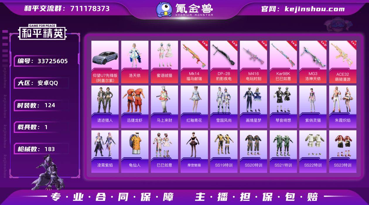 【kyhp2156】安卓 手Q-无敌战神框-2粉装-6特效枪-1载具-2粉色飞行器-55367热力值-11王牌印记-124套装-183枪皮 【热门品类】:套装-龟仙人 【粉色套装】:角色-洛天依,粉装-蜜语绒猫 【粉色枪皮等级】:M416-电玩时刻(五级),ACE32-萌骑漫游(一级),Kar98K-巳巳如意(五级),Mk14-福马献瑞(五级),DP-28-豹影疾电(五级),MG3-洛神天依(二级) 【粉色载具】:仰望U7(阿盖尔紫) 【粉色枪皮】:M416-电玩时刻,ACE32-萌骑漫游,Kar98K-巳巳如意,Mk14-福马献瑞,DP-28-豹影疾电,MG3-洛神天依 【粉色飞行器】:炫彩糖果飞行器 【粉色降落伞】:至尊龙雀降落伞,春暖花开降落伞,洛神天依降落伞,环太平洋降落伞,旋转彩虹降落伞,萌酷奶龙降落伞,精灵梦叶罗丽降落伞,千金淑猫降落伞,冷漠罗丽降落伞,异瞳寒姬降落伞,炫彩糖果降落伞 【稀有套装】:套装-龟仙人,套装-巳巳如意,套装-雪国风尚,套装-炫彩糖果,套装-马上来财,套装-迅捷龙虾,套装-遗迹猎人,角色-摩登魅猫,套装-朱霞炽焰,套装-凌霄紫焰,角色-紫俏灵猫,套装-画境星梦,套装-琴音绮想,套装-雨过天青,套装-红釉青花 【稀有枪皮】:AUG-冰晶雪宝,AKM-环太平洋,AKM-破晓战魂,AKM-龙的传人,AKM-玄冥寒域...