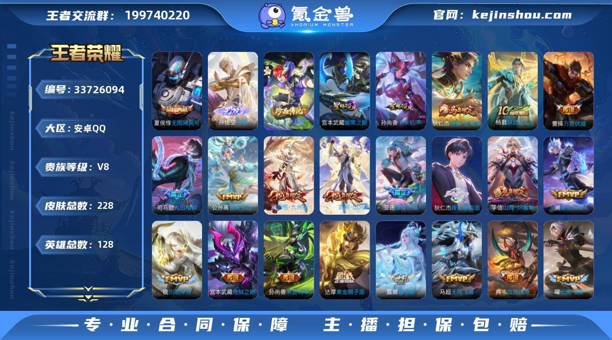 【精品推荐·无相·无限飓风号·孙策时之奇旅·夜礼服假面·神骥赴朔漠·愿照山河定·落雪白狼·山海炽霜斩·影龙天霄·愿照九州拓·霜月吟·祥瑞亨通·九山相柳·无双飞将·紫悦宝·可二次】YXw22842-安卓Q-127英雄-228皮肤-8王者印记-180铭文-贵族积分8w【贵族8】【1典藏·1无双·1珍品·2星传说·36传说·46按键】【因赛季更新游戏段付以上号为准!】 【英雄全皮】:司马懿全皮,孙权全皮,敖隐全皮,司空震全皮,莱西奥全皮,戈娅全皮 【荣耀典藏】:夏侯惇无限飓风号 【无双皮肤】:孙悟空无相 【珍品传说】:孙策时之奇旅 【星元皮肤】:宫本武藏幽冥之眼,孙尚香未来机甲 【传说皮肤】:狄仁杰神骥赴朔漠,杨戬纵目迁山,曹操万灵伏威,司马懿九山相柳,公孙离云诺千山,司空震愿照山河定,澜愿照九州拓,云缨幻光神枪,裴擒虎祥瑞亨通,桑启鸣野蒿,亚连落雪白狼,典韦战鼓燎原,澜逐花归海,露娜霜月吟,狄仁杰夜礼服假面,兰陵王影龙天霄,宫本武藏惊梅引,亚瑟追逃游戏,干将莫邪画中仙,李信山海炽霜斩,吕布怒海麟威,孙尚香音你闪耀,马超无双飞将,孙策末日机甲,铠绛天战甲,镜炽阳神光,虞姬启明星使,孙悟空零号赤焰,曜云鹰飞将,刘备时之恋人,达摩黄金狮子座,后羿黄金射手座,...
