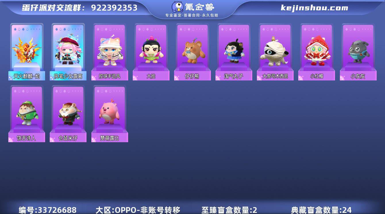 【dan905】安卓OPPO渠道服 安卓通用 至臻皮肤数量:2 典藏皮肤数量:24 热门装扮:赞萌露比 淘气丸子 饶舌诗人 仓鼠米仔 仔仔熊 执笔少女露离 天火麒麟-焰 大娃 小红帽 控球手迅风 小灰灰 大祭司木西恩 翅膀:天使·微光 蝴蝶之梦 音浪星梦 圣洁处女座
