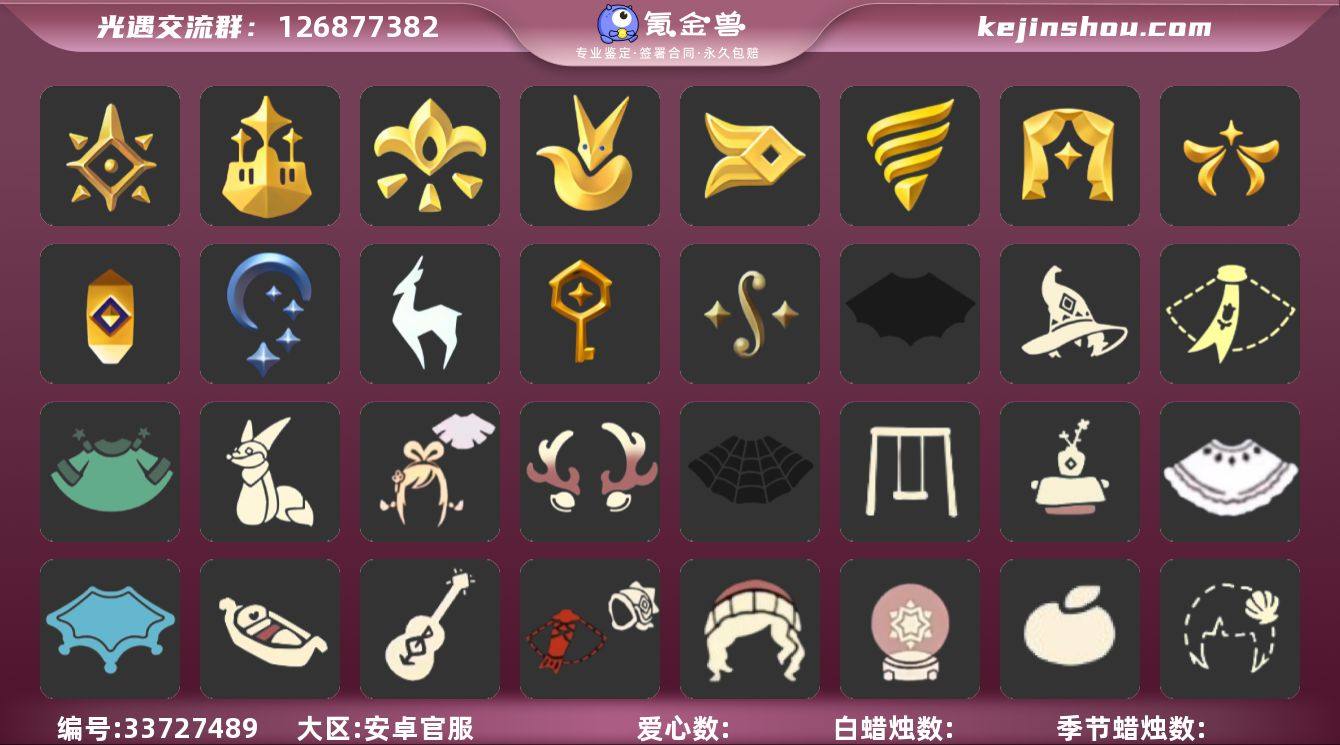 账号类型: 邮箱账号 季节已毕业: 预言季,梦想季,小王子季,风行季,潜海季,表演季,欧若拉季,集结季,夜行季,追忆季,九色鹿季,筑巢季,二重奏季 完成地图: 晨岛,云野,雨林,霞谷,暮土,禁阁,全图毕业 珍稀物品: 阿努比斯(狗头) 礼包: 蝙蝠套,巫师,围巾,星球斗,小狐狸,绊爱,鹿角,蜘蛛斗,秋千,茶桌,白绒金,瑞雪,小船,吉他,鲤鱼套,彩虹帽,雪花球,橘子,贝壳,黄伞,兔子,南瓜,雪花,tgc,创始人 裤子: 武士裤