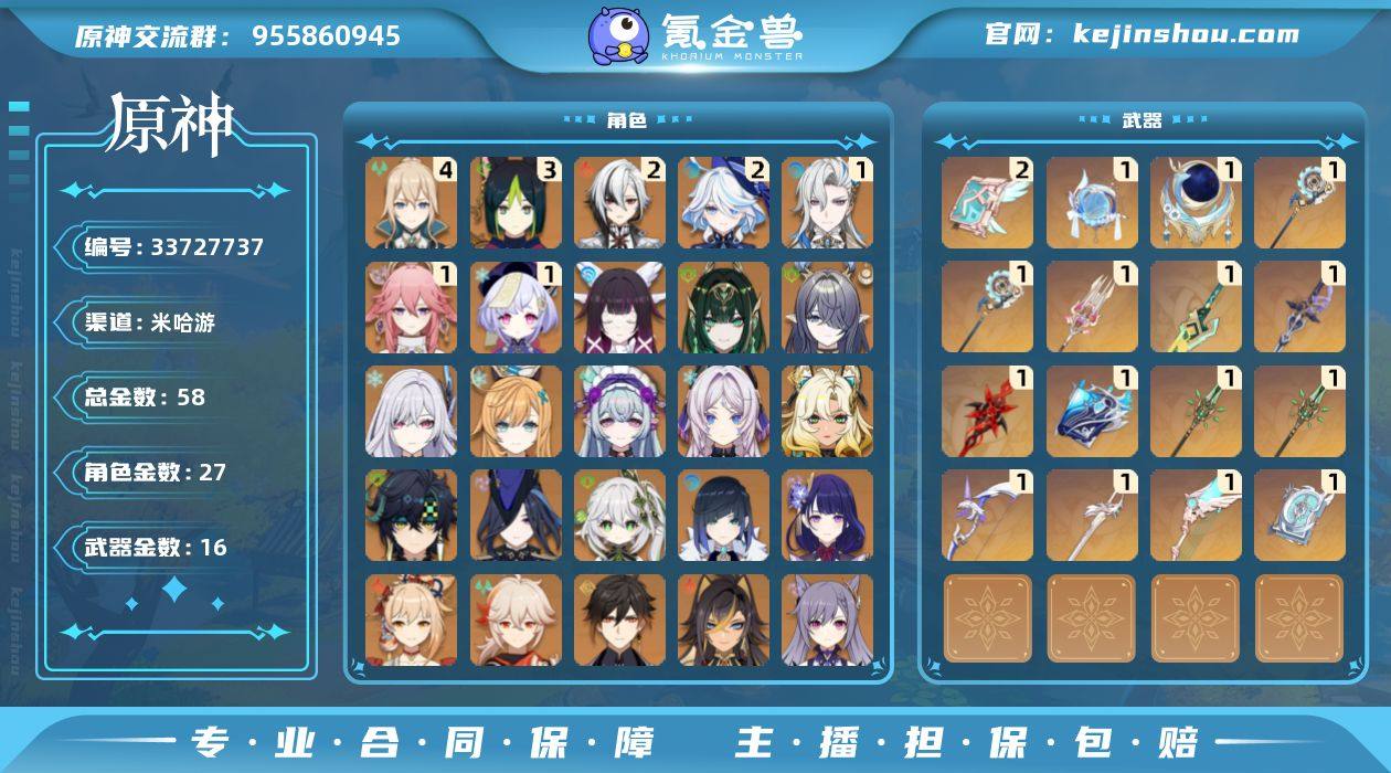 可换绑手机号,但不提供换绑码。建议原神崩铁同玩者购买。因为原神崩铁同号。崩铁等级70,崩铁角色和武器见补充图。一共36角色黄,15个五星光锥2+1昔涟,0+1白厄,0+1刻律,0+1瑕蝶,0+1风堇、长夜月,2+0黄泉,其余up均0+0,还有爻光,火花,花火,灵砂,飞霄,托帕,砂金,阮梅,知更鸟,丹恒,提宝,3+1布洛妮娅,等等角色主c练度还行