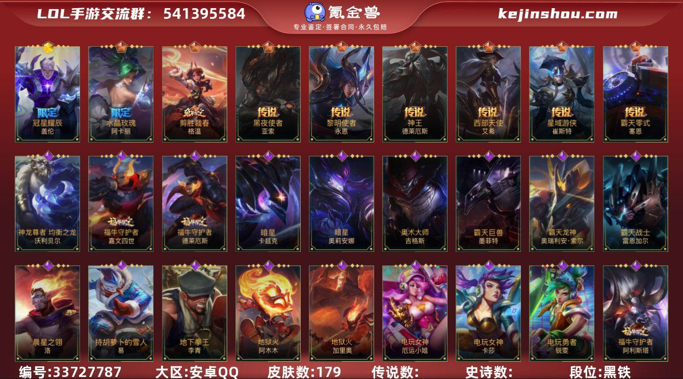 【LOLSYH496】137英雄/179皮肤/2神话/流光翡翠/冠星耀辰盖伦/流光仙韵 莫甘娜/水晶玫瑰阿卡丽/星域游侠卡牌/黑夜使者亚索/剪胜裁春格温/黎明使者永恩/神王诺手/西部天使寒冰/霸天零式塞恩/霸天剑魔亚托克斯/腥红之月剑魔/惊悚派对/殇之机器人/地狱火阿木木/霸天战士狮子狗/黎明使者卡尔玛/星域先知(可升级)/丧尸努努/暗星发条/泳池派对发条/斗魂无双赵信/暗星螳螂/蕊雪盈春:晏安 赫卡里姆/末路管家/猛虎布隆/圣诞老人/礼物选好了吗? 布隆/灭迹行者烬/霸天龙神龙王/腥红之月卡牌/怪诞童话 崔斯特/电玩女神卡莎/K/DA ALL OUT卡莎/神龙尊者 玉境灵龙/斗魂无双尼菈/K/DA ALL OUT阿卡丽/真实伤害 阿卡丽/源计划:火/福牛守护者剑姬/苹果机器人/星之守护者萨勒芬妮/银河魔装机神安妮/福牛守护者安妮/战场之王亚索/源计划:阴/灵能特工劫/源计划:雷/欧米伽小队 魔鬼伞兵/娜就去看看/小蜜蜂提莫/驯龙女巫/银河魔装机神龙女/源计划:裁决/暮星之羽/晨星之翎/源代码青钢影/福牛守护者皇子/神龙尊者 均衡之龙 沃利贝尔/泳池派对盲僧/地下拳王/奈落之炎/电玩女神女枪/破败军团女枪/持胡萝卜的雪人/玉剑传说 无极/福牛守护者诺手/战斗教授男枪/霸天重坦 茂凯/破败军团德莱文/福牛守护...
