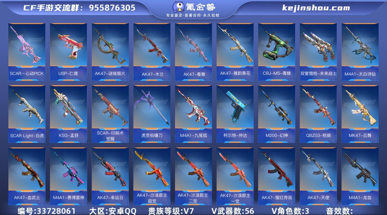 x2436 VIP7级,心至尊,王心,王影,冰皮王势,王尊,王掣,王魂,王锋,KSG孟获,王心雷,王者之翼烟雾弹,王者之翼闪光弹,萝拉,葵,关小雨,狙击枪线2消灭音效2;【王者武器】:王者之心,王者之影,王者之势,王者之尊,王者之掣,王者之魂,王者之锋,王者之心手雷,王者之心闪光弹,王者之翼闪光弹,王者之翼烟雾弹,王者之心烟雾弹;【三国武器】:KSG-孟获,USP-仁德,左轮-卧龙觉醒,双持GLOCK18-本初,柯尔特-仲达,CZ75-策,虎贲钩镰刀,气勇胆烈戟,激昂霸王枪;【热门武器】:AK47-黑武士,AK47-火麒麟,AK47-无影,AK47-Rush-星速,AK47-角斗士,AK47-猩红传说,AK47-天使,AK47-血武士,AK47-沙漠郡主-二觉,AK47-木兰,AK47-春雅,AK47-变色龙,AK47-幸运日,M4A1-雷神,AK47-谜城烟火,M4A1-枪娘,M4A1-死神,AK47-雅韵青花,M4A1-玫瑰精灵,M4A1-黑骑士,AK47-破空冰刃,M4A1-龙血,M4A1-心动次元,M4A1-堕天神,M4A1-冰锋觉醒,M4A1-竞界荣光,M4A1-赛博雷神,M4A1-千变,M4A1-夏清觉醒,M4A1-猎神,M4A1-运输船,M4A1-太白诗仙,SCARLight-白虎,SCAR-幽暗骑士,M4A1-九尾狐,剑齿虎,SCAR-心动PICK,SCAR-印刷术觉醒,XM8-湮灭,剑齿虎-炫彩,AUG-机械...