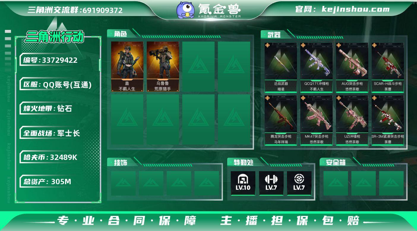 QQD296/可二次/QQ区【满仓满体满负+部门全4+仓库多6套猛攻号】【总资产:305M+近战暗星+181发AWM子弹+3X3安全箱炫彩皮肤+S8赛季通行证】/烽火等级:60/全面战场:23/纯币:32489K/三角券加币:359(6三角币+353三角券)【近战-暗星】【蛊-不羁人生】【乌鲁鲁-荒原猎手】//部门:44444/特勤等级(技术中心3级/工作台3级/制药台3级/防具台3级/仓库10级/指挥中心6级/训练中心7级/靶场7级/潜水中心2级/收藏室1级)---暗星捆绑包---/橙色挂饰x2/流动资产:238M段位:钻石I/详细看图