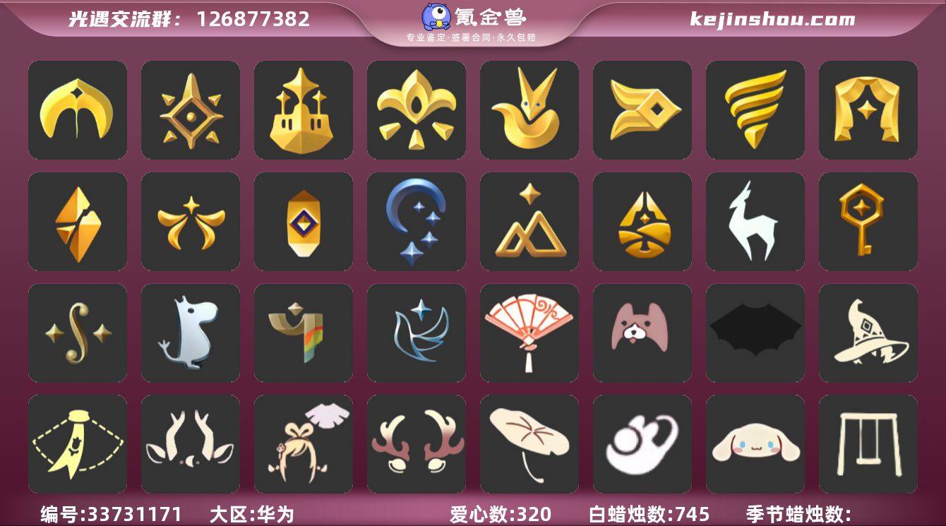 账号类型: 手机账号 季节已毕业: 圣岛季,预言季,梦想季,小王子季,风行季,潜海季,表演季,破晓季,欧若拉季,集结季,夜行季,追忆季,拾光季,归巢季,九色鹿季,筑巢季,二重奏季,姆明季,彩染季,青鸟季 完成地图: 晨岛,云野,雨林,霞谷,暮土,禁阁 珍稀物品: 鳐鲲斗篷,阿努比斯(狗头),白枭,透明蝶翼斗,玫瑰花,彩虹围巾 礼包: 蝙蝠套,巫师,围巾,九色鹿角,绊爱,鹿角,荷叶伞,兔子鞋,大耳狗发饰,秋千,福娃,灯笼,橘子,贝壳,兔子,南瓜,枯角,雪花,竖琴,水母,星月头饰,彩虹耳钉,新年裤,四叶草,新年耳钉,创始人,海蓝波浪发型,日光耳环,满月耳坠,锦标赛桂冠,献瑞折扇礼包,小狗周年发饰 裤子: 武士裤,背带裤,搓澡巾,击剑裤,妮妮裙子,王子服,蓝绿裤,筑巢季·裤子,风行毕业裤子 面具: 阿努比斯,凤凰面具,呼吸面具,夜行毕业面具,黄眉企鹅面具,辉光羚羊面具 面饰: 红耳机,黑框眼镜,青鸟毕业面饰 项链: 围巾 发型: 归巢毕业发型,若笠,虚荣,单侧绑发,小王子发型,留辫蘑菇头,飞天盘发 头饰: 行军锅头盔,羽毛发饰,牛仔帽,蓝色音乐会,平顶帽 斗篷: 海洋斗,蟑螂斗,绿芽,粉红绒毛斗篷,遥鲲斗篷,黄色连帽披风,燕尾斗篷,冥龙斗篷,领主红斗篷,彩染围巾斗篷,青鸟毕业斗篷 配饰: 雨伞,筑巢季·小手办,高音钢琴,姆明抱...